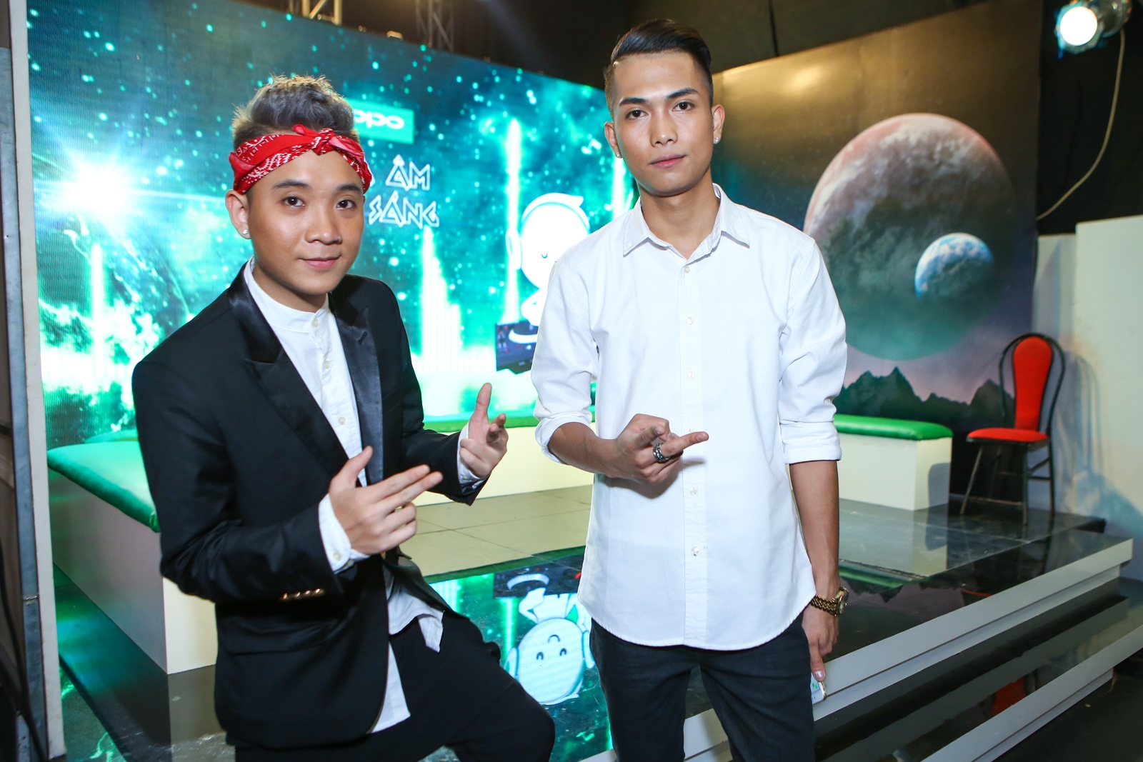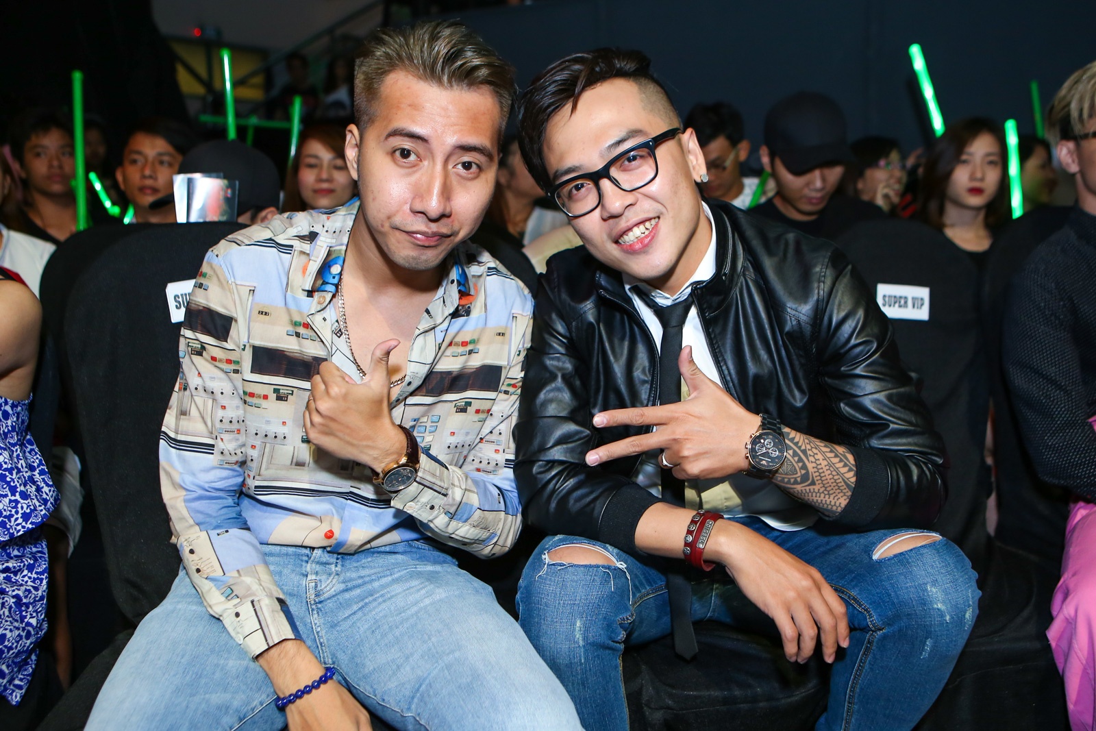 Rapper Big Daddy và JustaTee háo hức trước giờ trình diễn. |