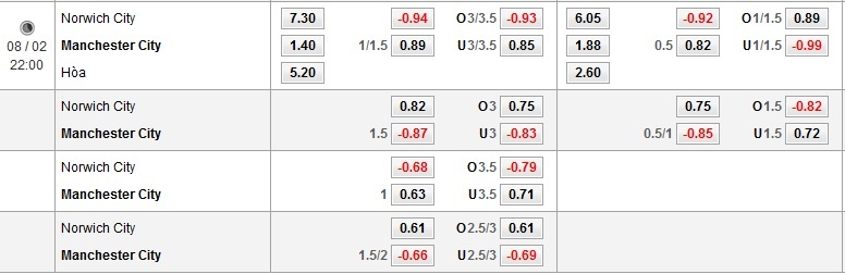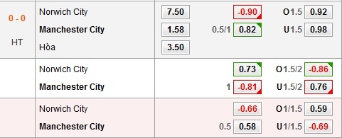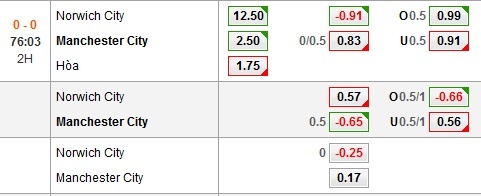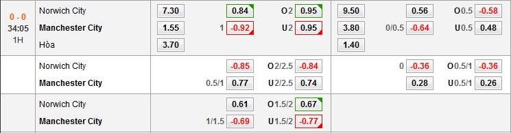 | Tỉ lệ hiệp 2 trận Norwich - Man City. |