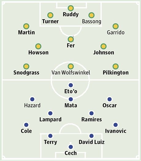 Trong chuyến đi tới sân Carrow Road, chiến lược gia người Bồ Đào Nha nhiều khả năng sẽ sử dụng Eto’o ngay từ đầu. Hiện tại, HLV Mourinho chỉ còn trong tay Eto’o và Demba Ba sau khi Torres bị cấm thi đấu một trận và đang phải điều trị chấn thương. Theo chẩn đoán của các bác sỹ, tiền đạo người Tây Ban Nha sẽ phải nghỉ hết tháng 10 mới có thể trở lại thi đấu.