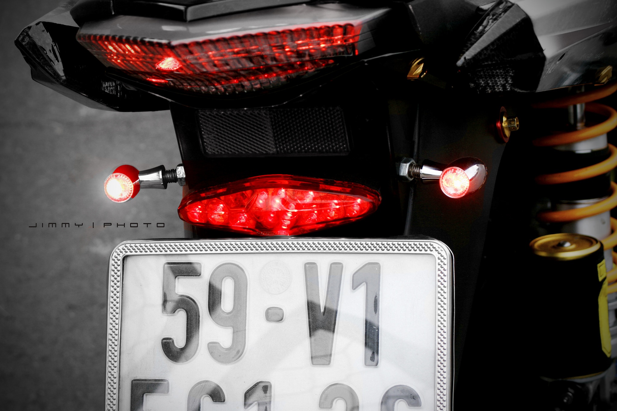 | Đèn xi-nhan sau hiệu Rizoma. Đây là món đồ chơi hiếm bởi nó có hai màu, đèn xi-nhan màu vàng và một đèn LED màu đỏ bật sáng khi dừng xe. |