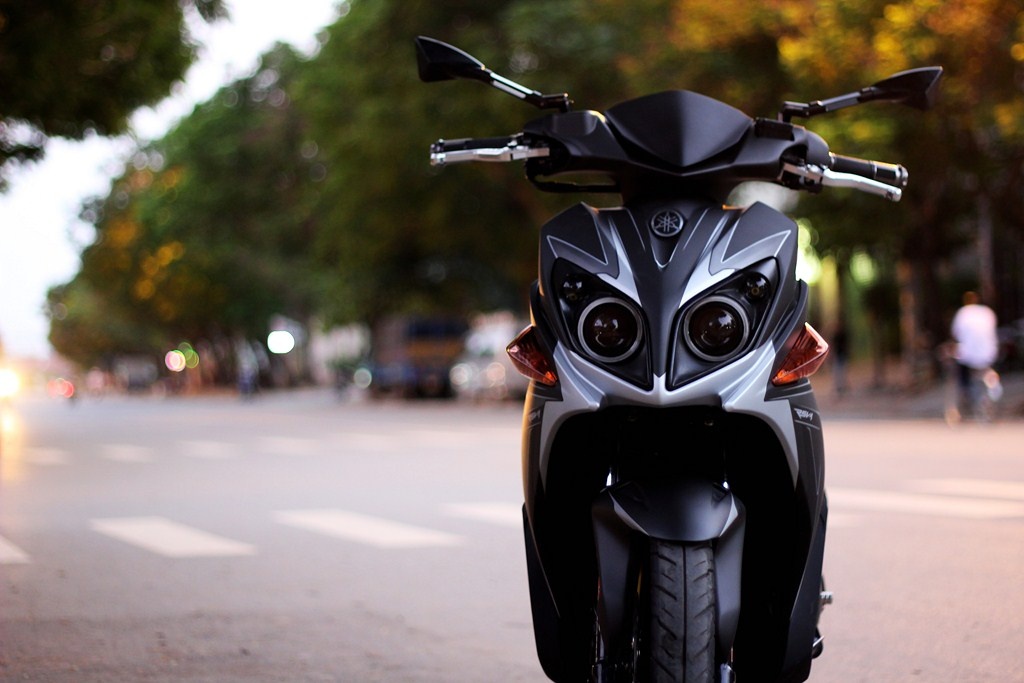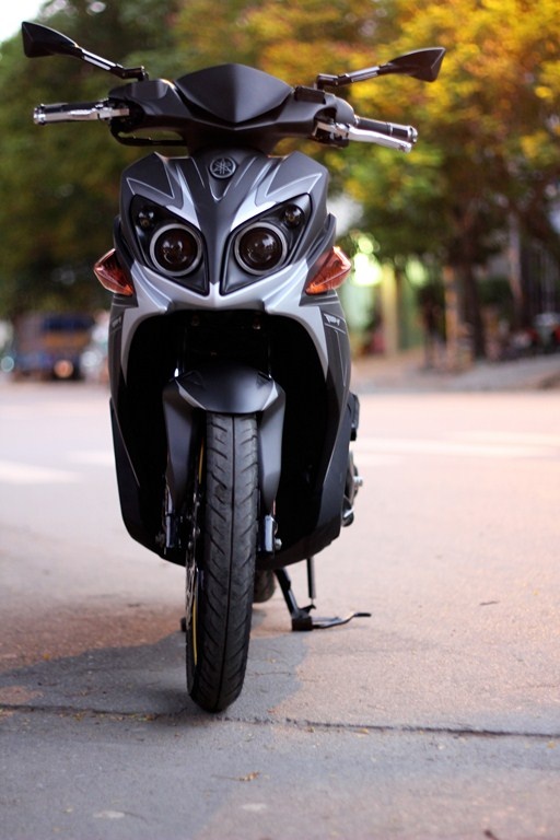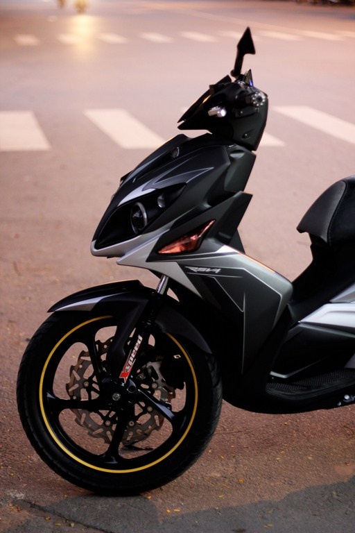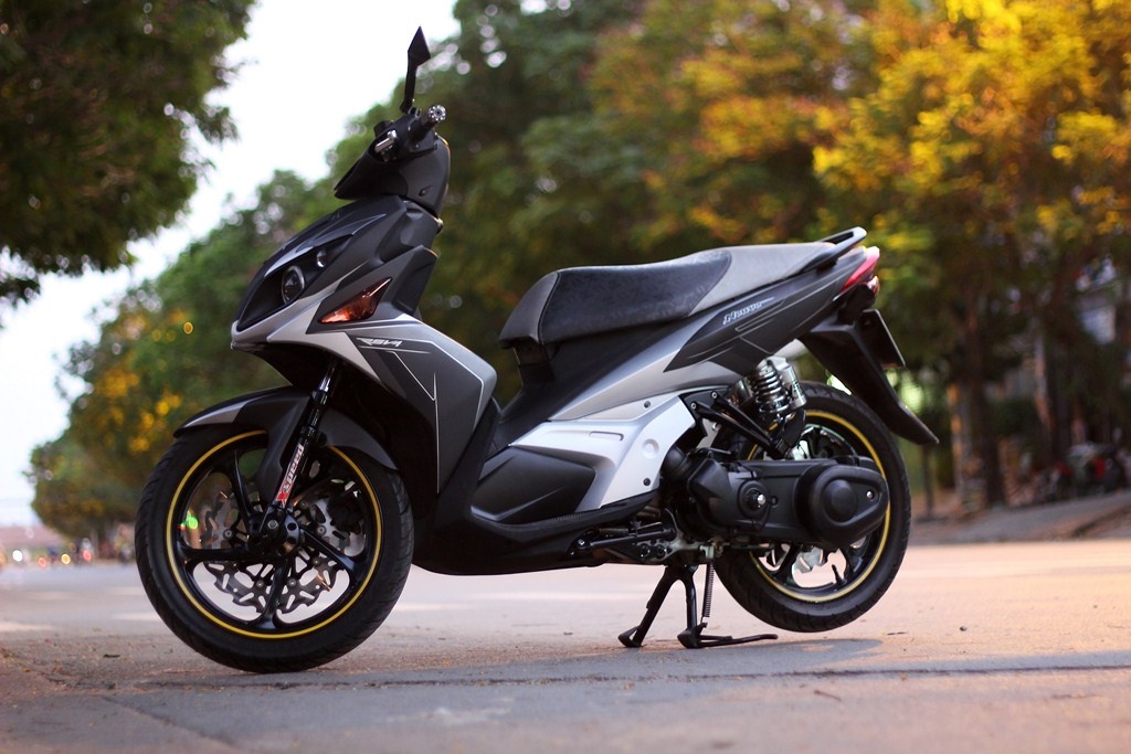 | Mẫu xe tay ga Nouvo LX nguyên bản màu đen-bạc trở nên sắc sảo hơn với "dàn áo" phong cách siêu xe. |