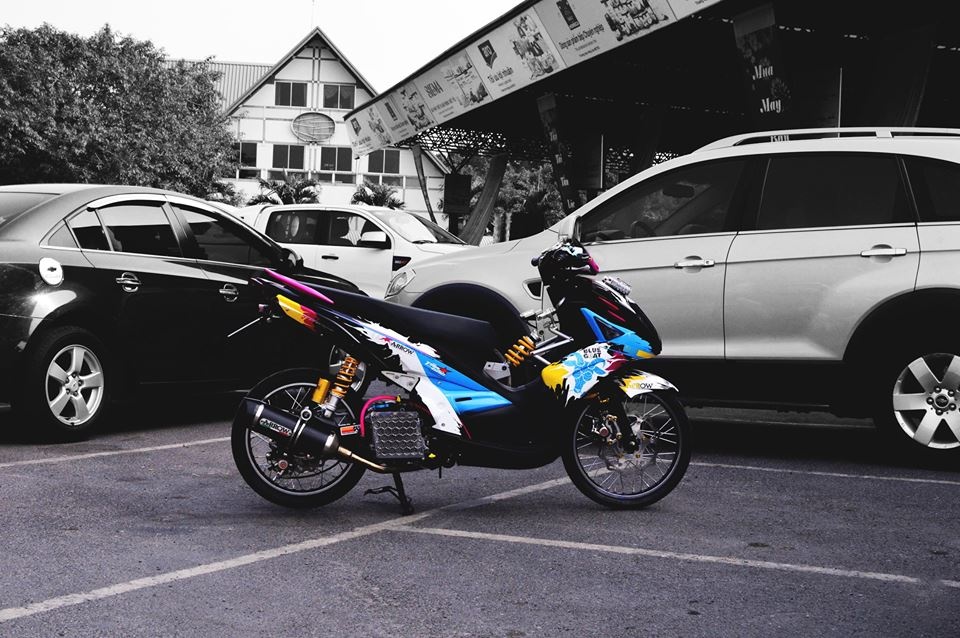 | Chiếc Nouvo SX độ phong cách Blue Goat thuộc sở hữu của một biker khá nổi tiếng ở Sài Gòn. Đây là chiếc xe gắn bó rất lâu và có nhiều kỷ niệm nên chủ nhân của nó quyết định độ lại hoàn chỉnh lần cuối trước khi đi du học nước ngoài. |