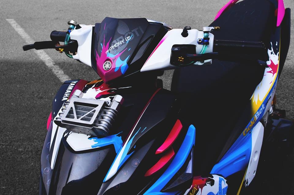 Chiếc xe tay ga Nouvo SX Blue Goat được làm mới bằng dàn áo chế mủ, sơn tem hình chú dê xanh cùng loạt phụ kiện hàng hiệu giá trị.