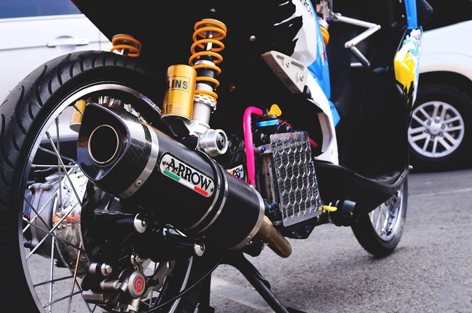 Ngoài ra, để phục vụ sở thích và tạo nét độc đáo, chiếc xe còn được trang bị một phuộc Ohlins giữa mặc dù nó không có tác dụng giảm xóc.