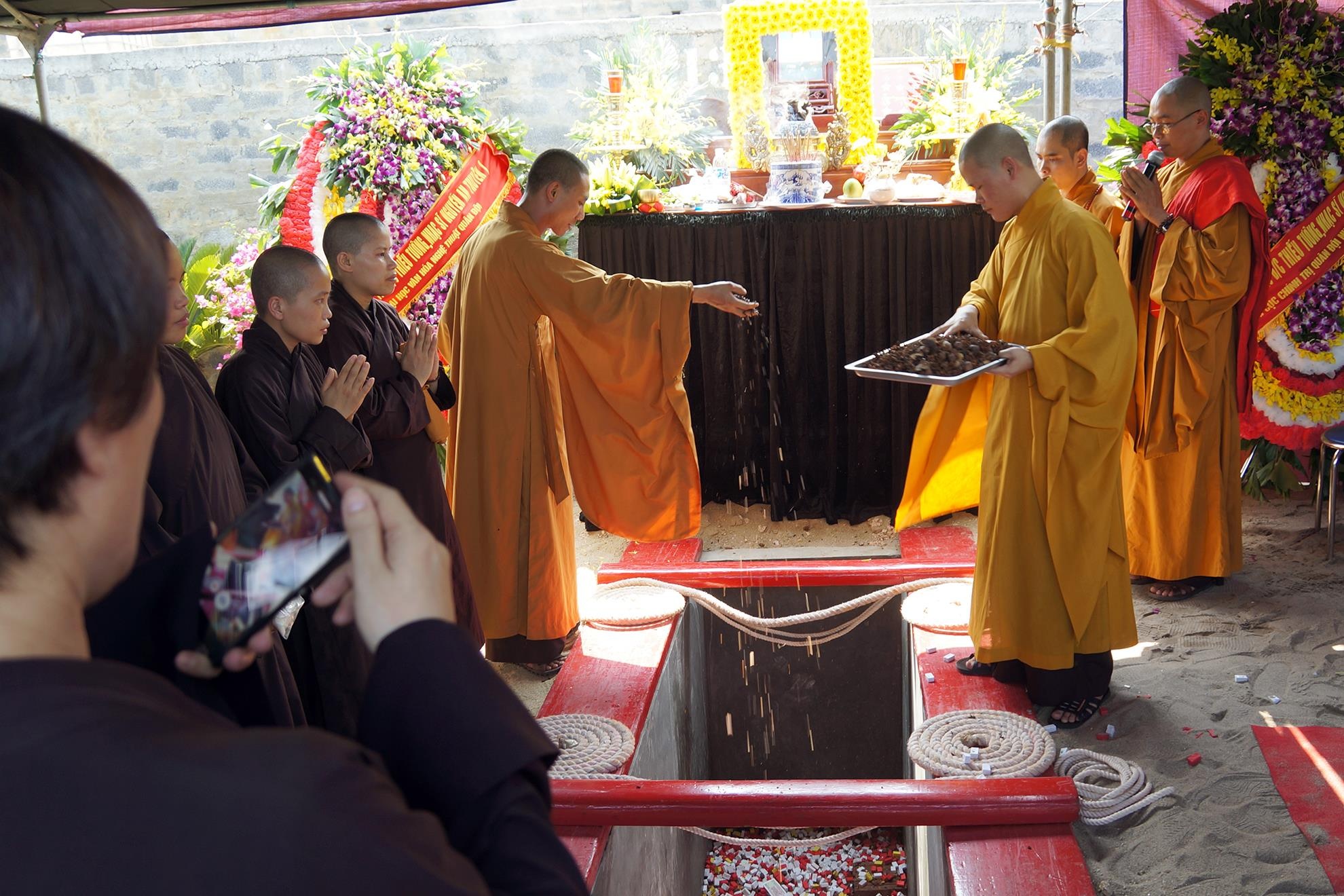 14h, đoàn rước đến nghĩa trang Lạc Hồng Viên thuộc xã Dân Hòa, huyện Kỳ Sơn, Hòa Bình. 14h45, sau khi các nhà sư làm lễ, lễ hạ huyệt được tiến hành.