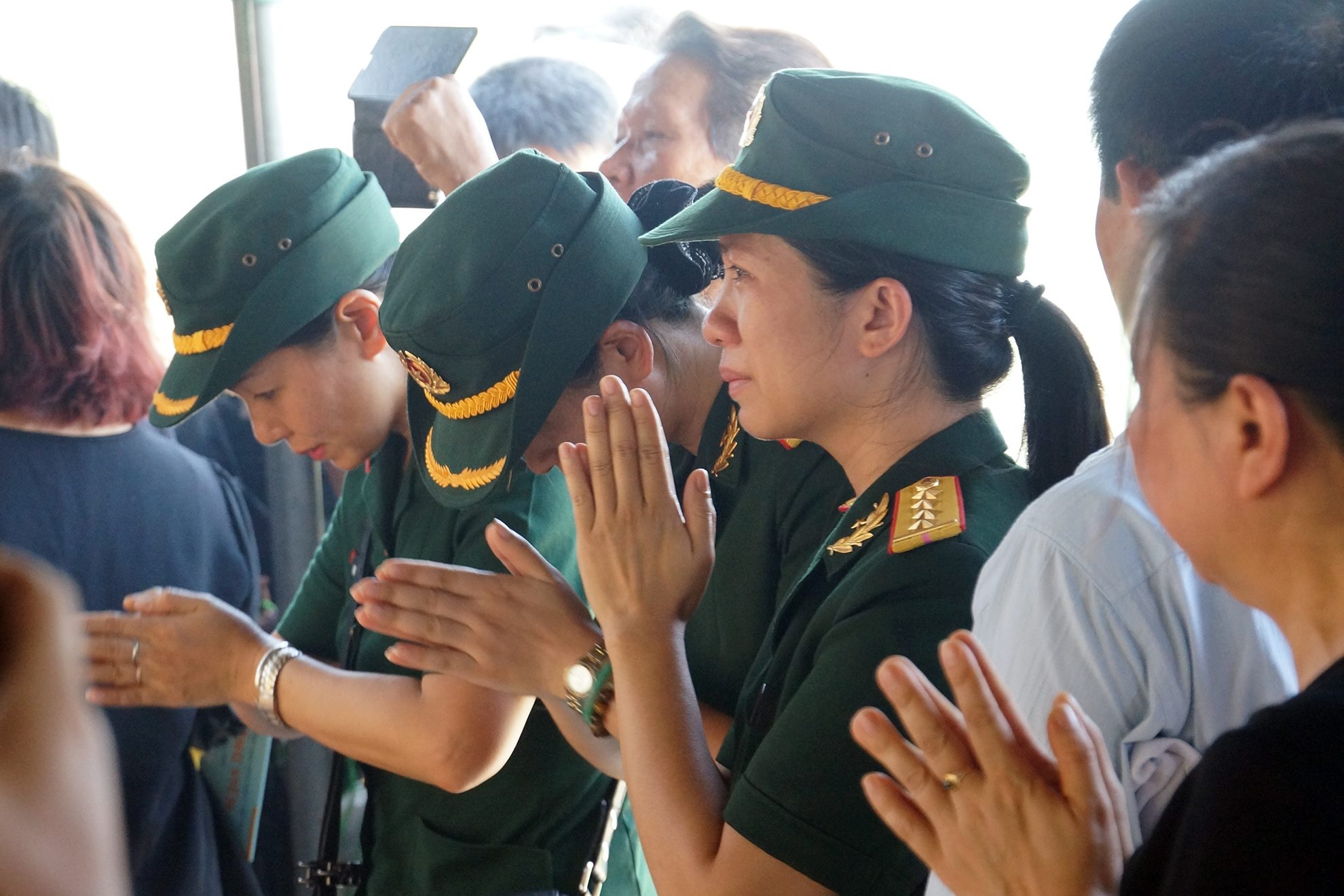 Bà Ngô Huyền Lâm và con gái Bông Mai lặng người nhìn nhạc sĩ An Thuyên lần cuối.