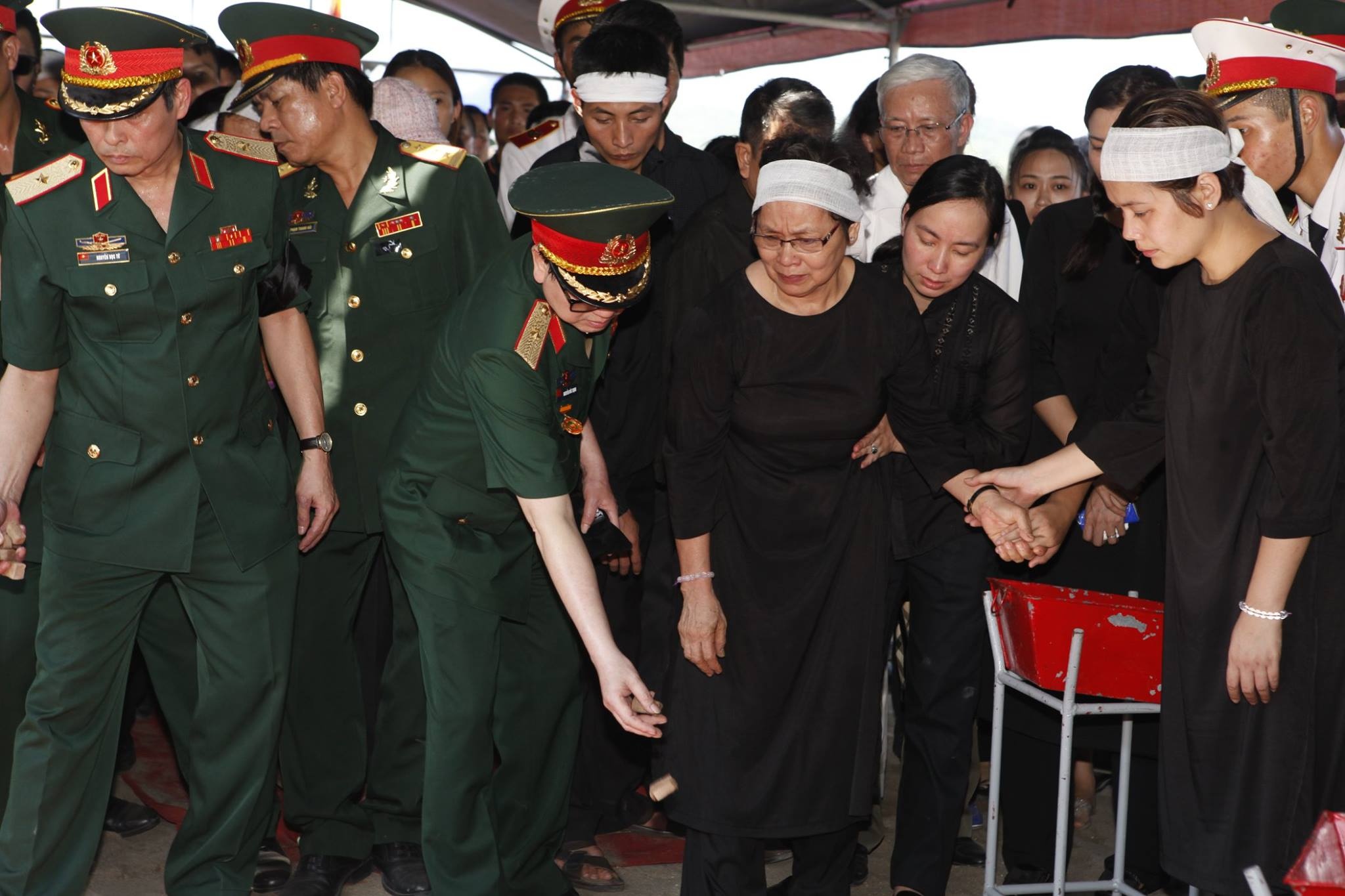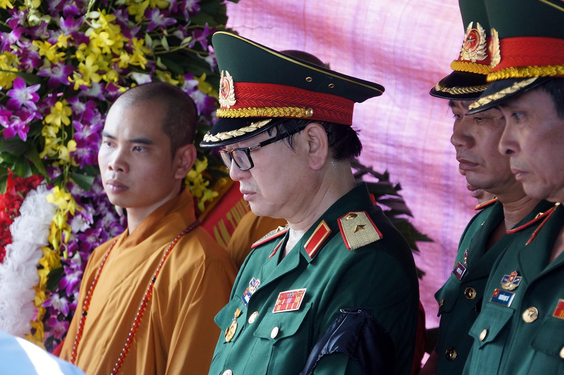 Hiệu trưởng trường ĐH Văn hóa Nghệ thuật Quân đội - NSƯT, thiếu tướng Nguyễn Đức Trịnh - lặng người trong phút tiễn đưa nhạc sĩ An Thuyên về với đất mẹ.