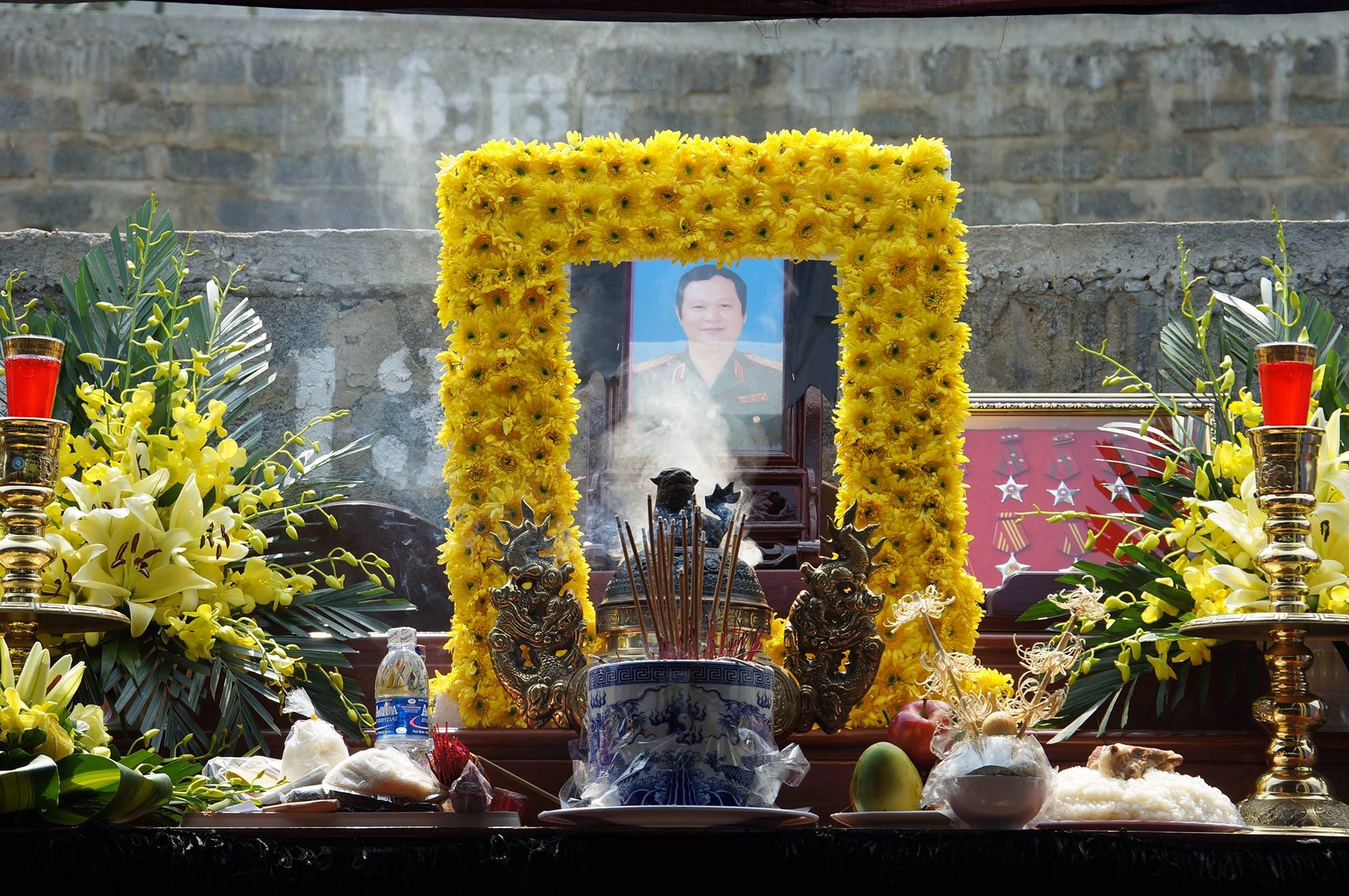 Con trai, nhạc sĩ An Hiếu thắp hương cho cha.