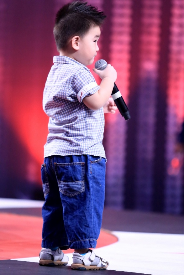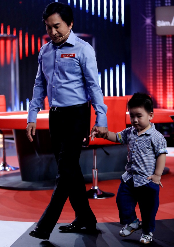 Dù nói chưa sõi nhưng quý tử Kim Tử Long rất dạn dĩ khi đứng trên sân khấu. Dưới sự hướng dẫn của bố, Gia Khánh tặng khán giả truyền hình một bài hát. Việt Hương, Trấn Thành nghe không rõ nhưng cũng bày tỏ sự yêu mến dành cho Gia Khánh. |