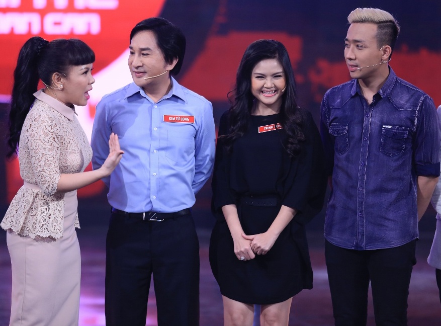 Vừa gặp Việt Hương, Kim Tử Long dành cho chị chiếc hôn ngọt ngào lên má. Trước sự hoảng hốt của Trấn Thành, nữ danh hài giải thích, trước đây chị từng có cơ hội đóng đào chính của Tử Long nên 2 anh em khá thân tình. |