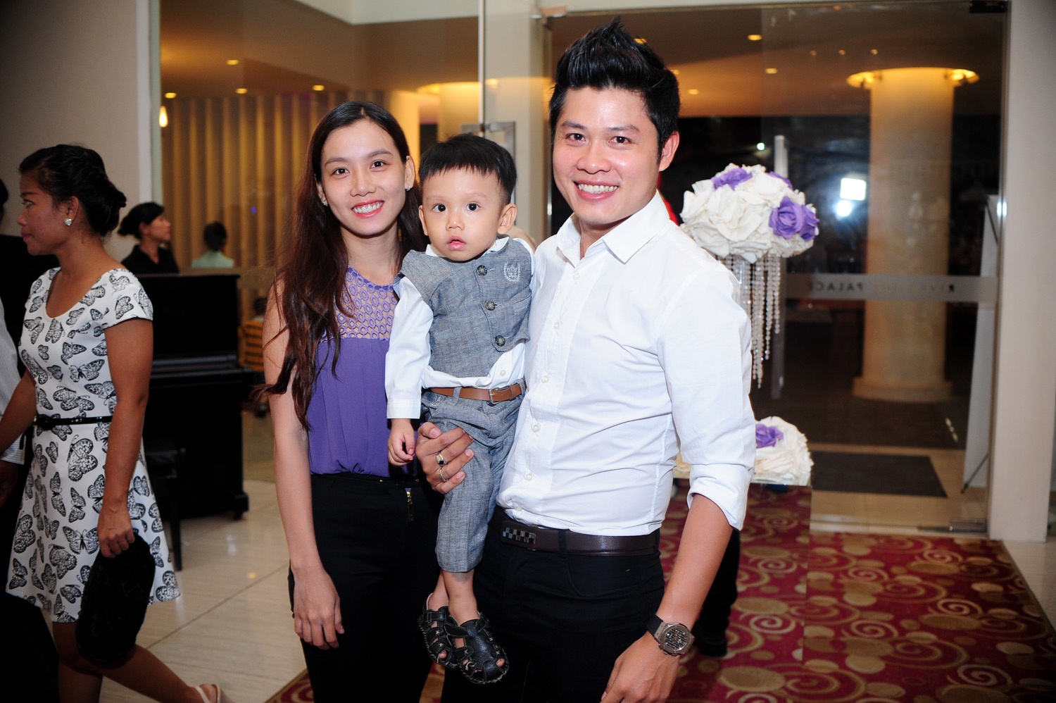 | Vợ chồng nhạc sĩ Nguyễn Văn Chung đưa con tới chúc mừng đám cưới Gia Bảo - Thanh Hiền. |