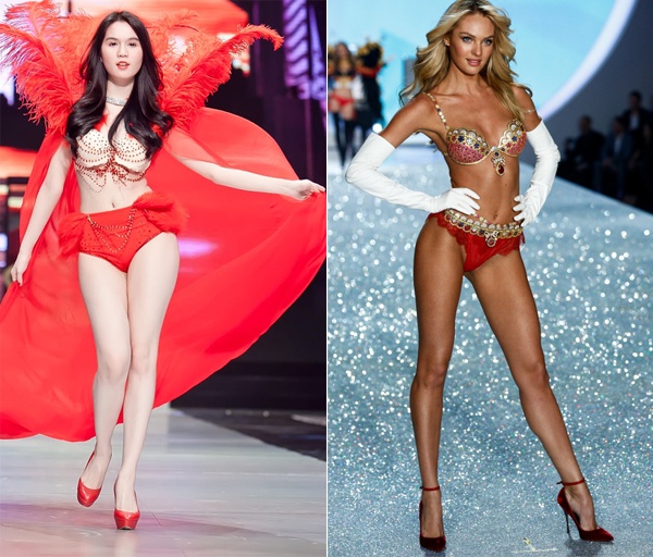 | Ngọc Trinh tự tin ngoại hình có thể biểu diễn ở Victoria's Secret: Đối với công chúng yêu thời trang, nhắc đến “thiên thần nội y” thường nghĩ ngay tới thương hiệu nội y Victoria’s Secret – nơi sở hữu dàn người mẫu bốc lửa cùng với thần thái thân thiện, hấp dẫn, mê hoặc. Tại Việt Nam, Ngọc Trinh được mệnh danh là “người mẫu nội y” với số đo cơ thể hấp dẫn và gương mặt ngây thơ, xinh xắn, cô liên tục là tâm điểm chú ý sau mỗi bộ ảnh nội y, bán khỏa thân được tung ra. Mới đây nhất, người đẹp đến từ Trà Vinh cho ra mắt bộ ảnh khỏa thân mới nhận được khá nhiều lời khen ngợi. |