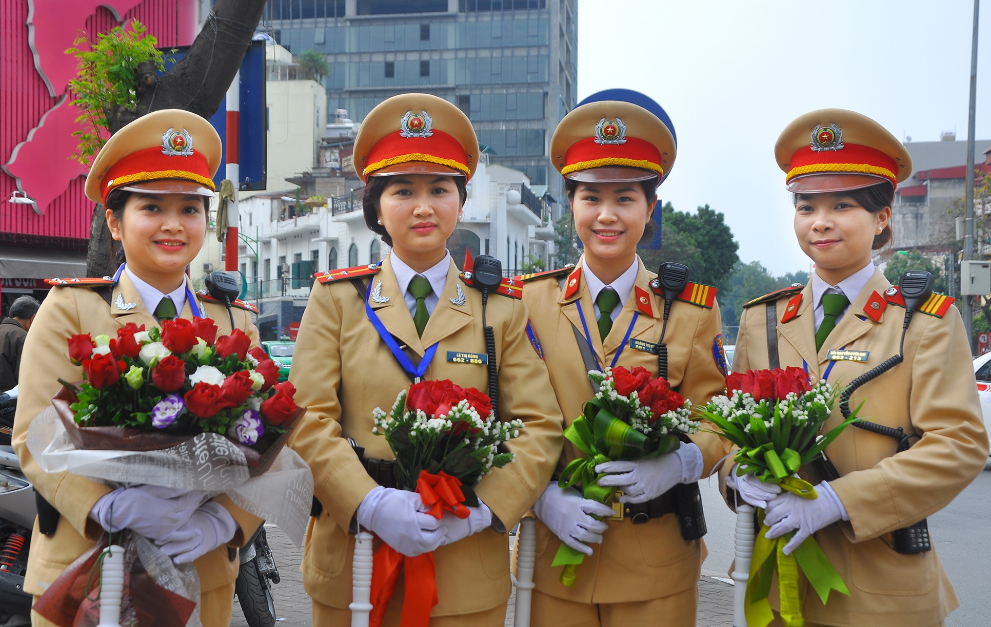 | Lãnh đạo Phòng CSGT Hà Nội cho biết, đơn vị có tổng số hơn 100 nữ CSGT. Trong đó, hơn 30 chiến sĩ thường xuyên tham gia phân luồng tại chốt giao thông trọng điểm. Trong hai năm xây dựng hình ảnh nữ CSGT, đơn vị nhận được nhiều phản hồi tích cực từ người dân Thủ đô cũng như người tham gia giao thông cả nước. Nhân ngày quốc tế phụ nữ 8/3, lãnh đạo Phòng CSGT quyết định tuyên dương thượng sĩ Hoàng Thị Hương cùng 7 nữ CSGT khác đạt nhiều thành tích xuất sắc. |