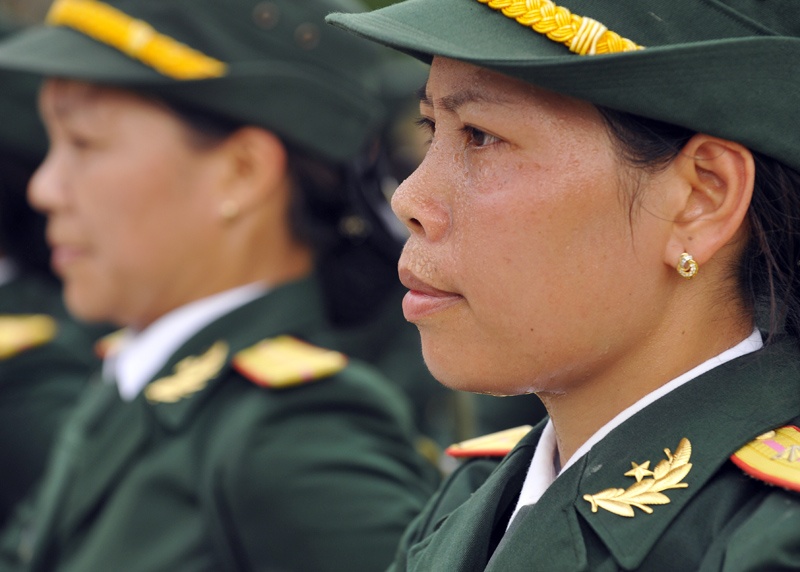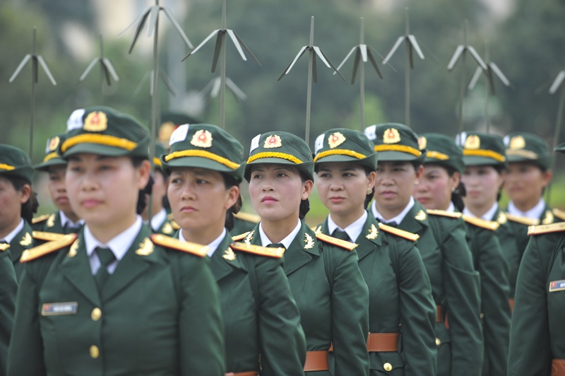 Các nữ quân nhân được tuyển chọn từ nhiều đơn vị, chiều cao đồng đều.