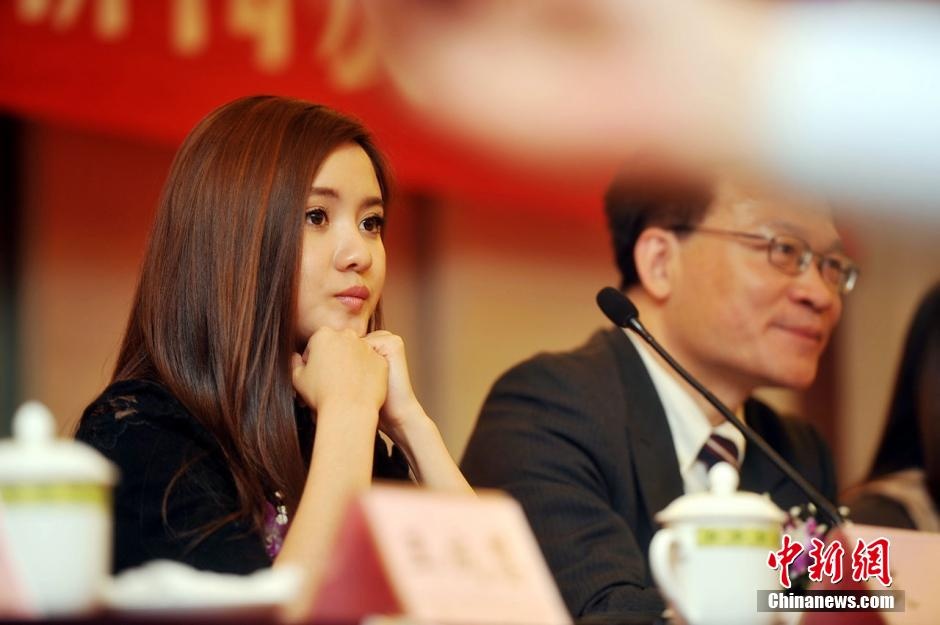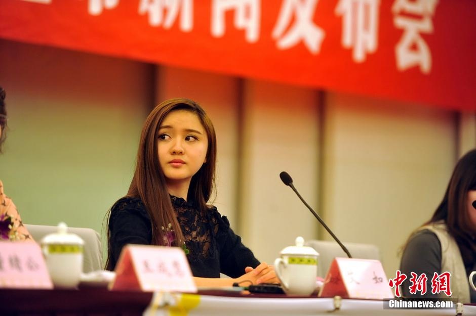 Mingjiao Yi tự tin, chững chạc trong buổi họp báo công bố thành tích của đội bóng.
