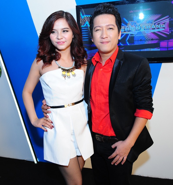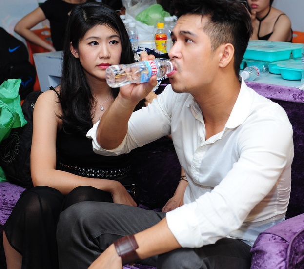 | Sau khi nam ca sĩ dừng cuộc chơi để nhường cơ hội cho đàn em, anh lùi vào khu vực sau cánh gà để nghỉ ngơi. Bạn gái anh, nữ phi công Đông Phương cũng di chuyển từ khu vực sân khấu vào hậu trường để động viên bạn trai. Cả hai nói chuyện vui vẻ và thoải mái với quyết định của nam ca sĩ. |