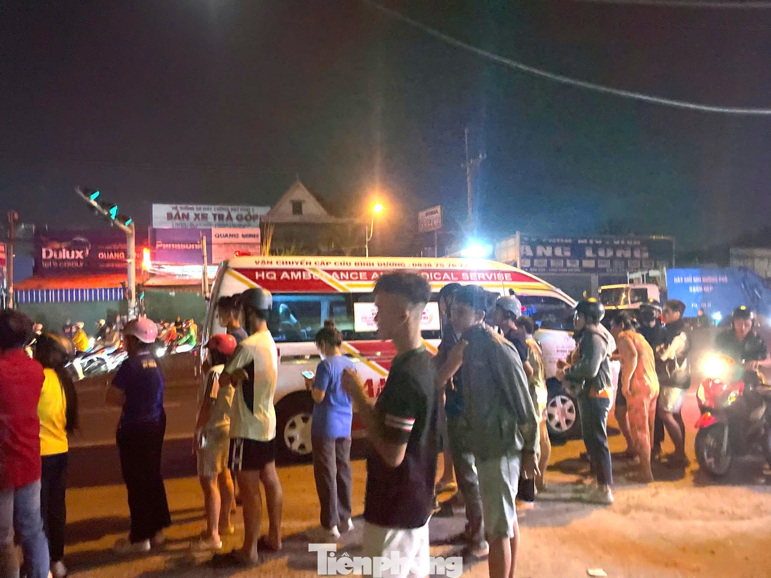 | Người dân hiếu kỳ đứng theo dõi công an khám nghiệm hiện trường vụ tai nạn. |
