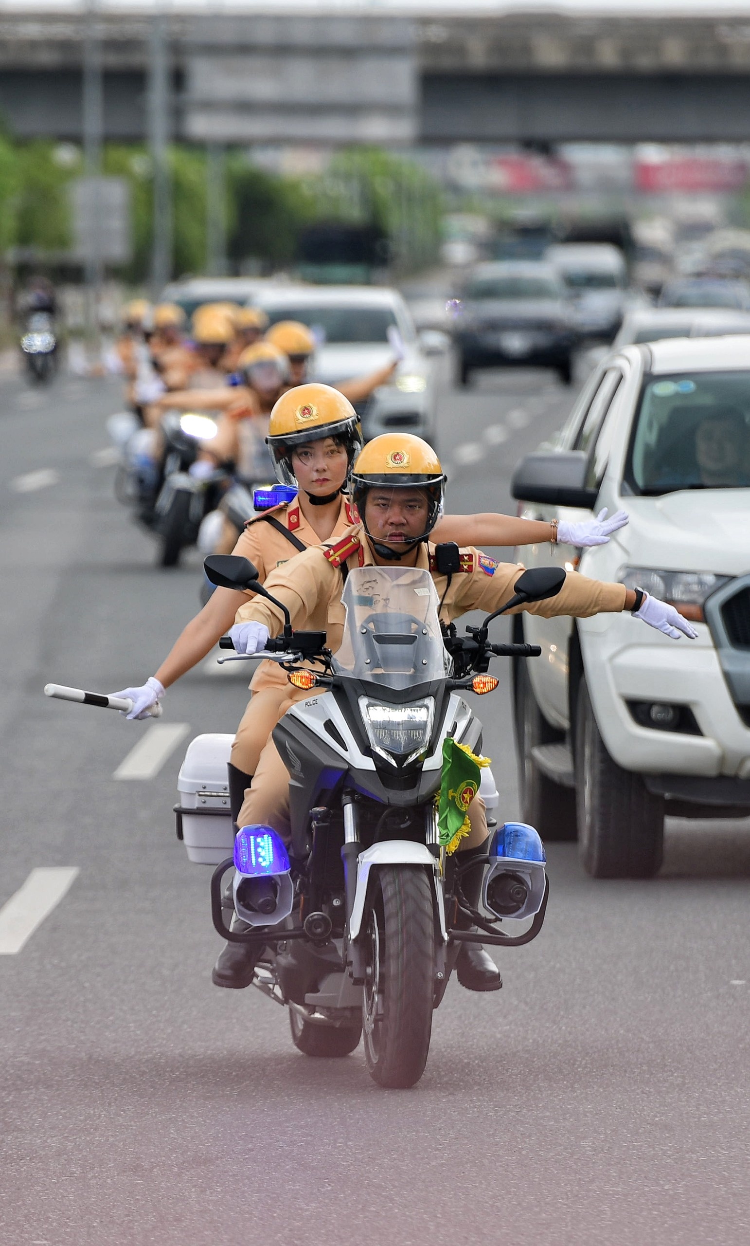 25 nữ chiến sĩ của Cục CSGT cùng các đồng nghiệp nam vừa trải qua khóa huấn luyện kỹ năng dẫn đoàn, chỉ huy điều khiển giao thông để sẵn sàng phục vụ các sự kiện chính trị lớn.