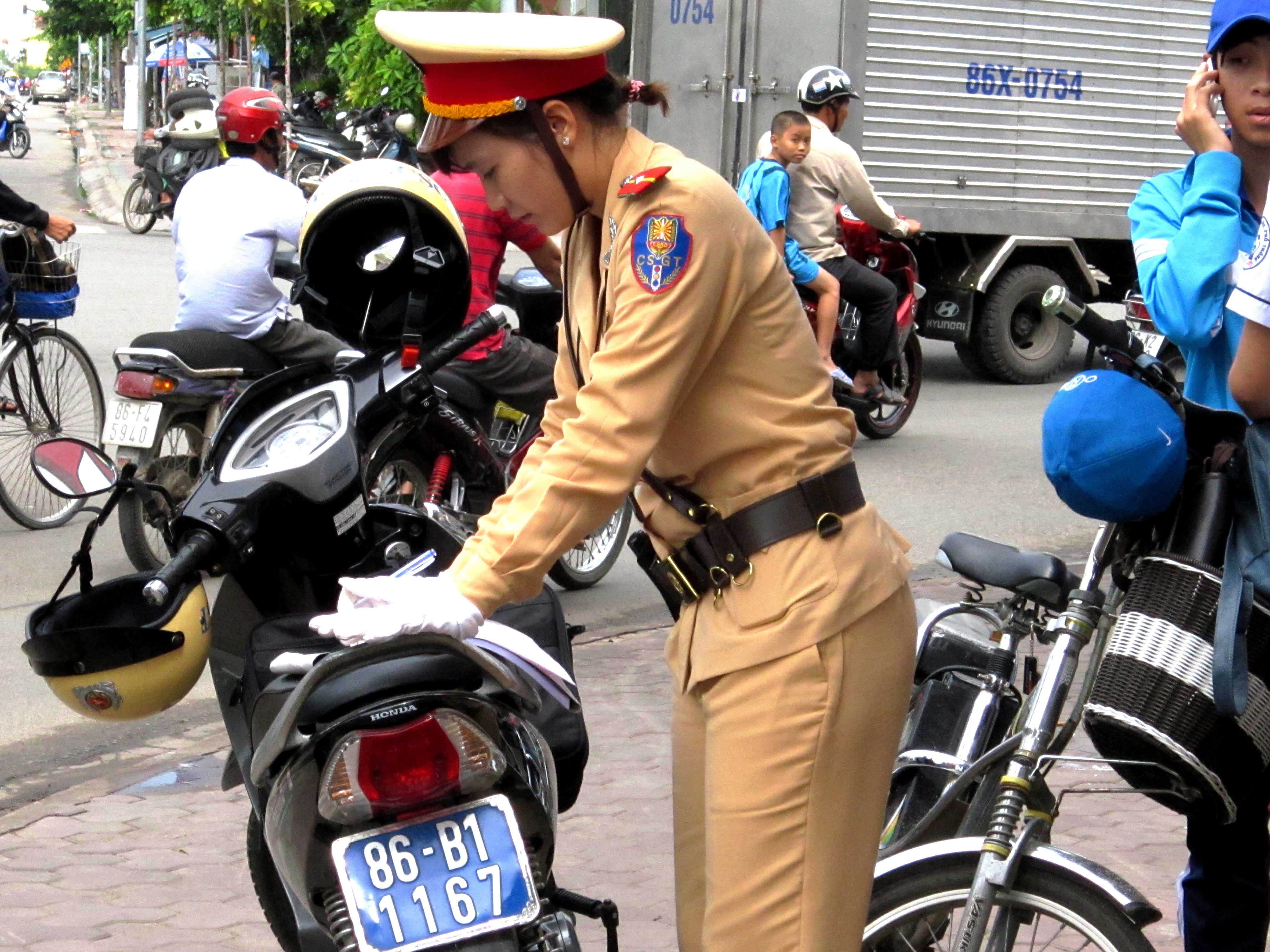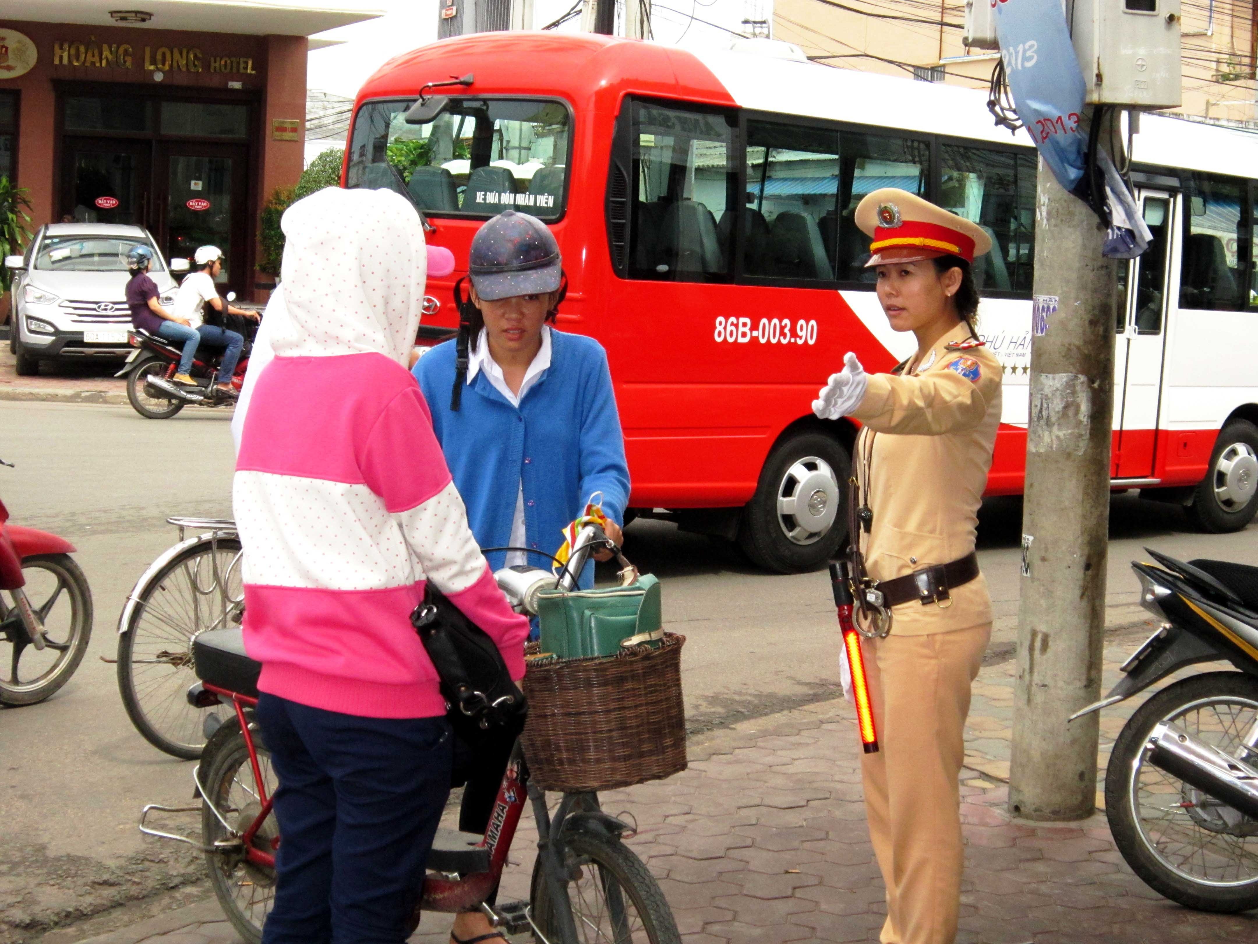| Ngay ngày đầu ra quân, tổ cảnh sát nữ đã tiến hành xử phạt những trường hợp sai phạm. |
