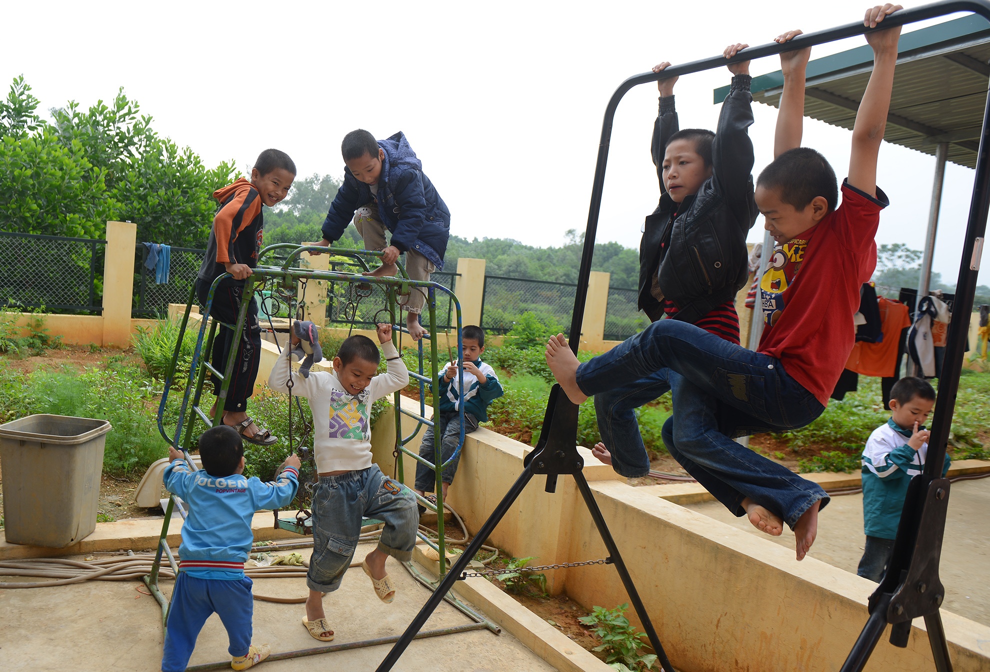 Dù đi học cùng trường với các bạn song các trẻ cấp 1, 2 tại trung tâm phải học lớp riêng. Chỉ có cấp 3 được hòa nhập hoàn toàn với cộng đồng. So với các bạn cùng tuổi, những cậu bé 8-12 tuổi ở đây thường nhỏ, gầy hơn dù được các mẹ nuôi và cán bộ rất quan tâm.