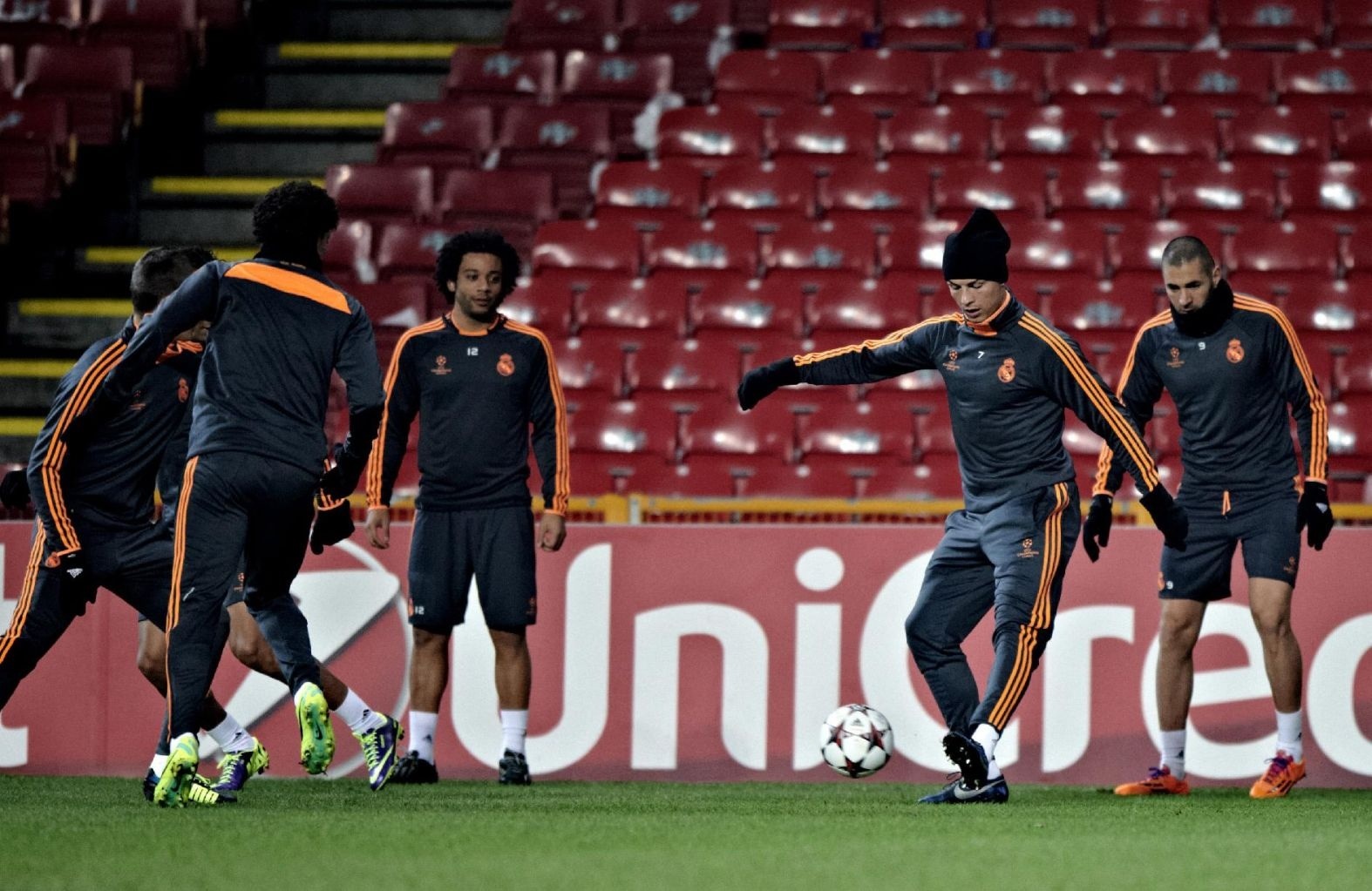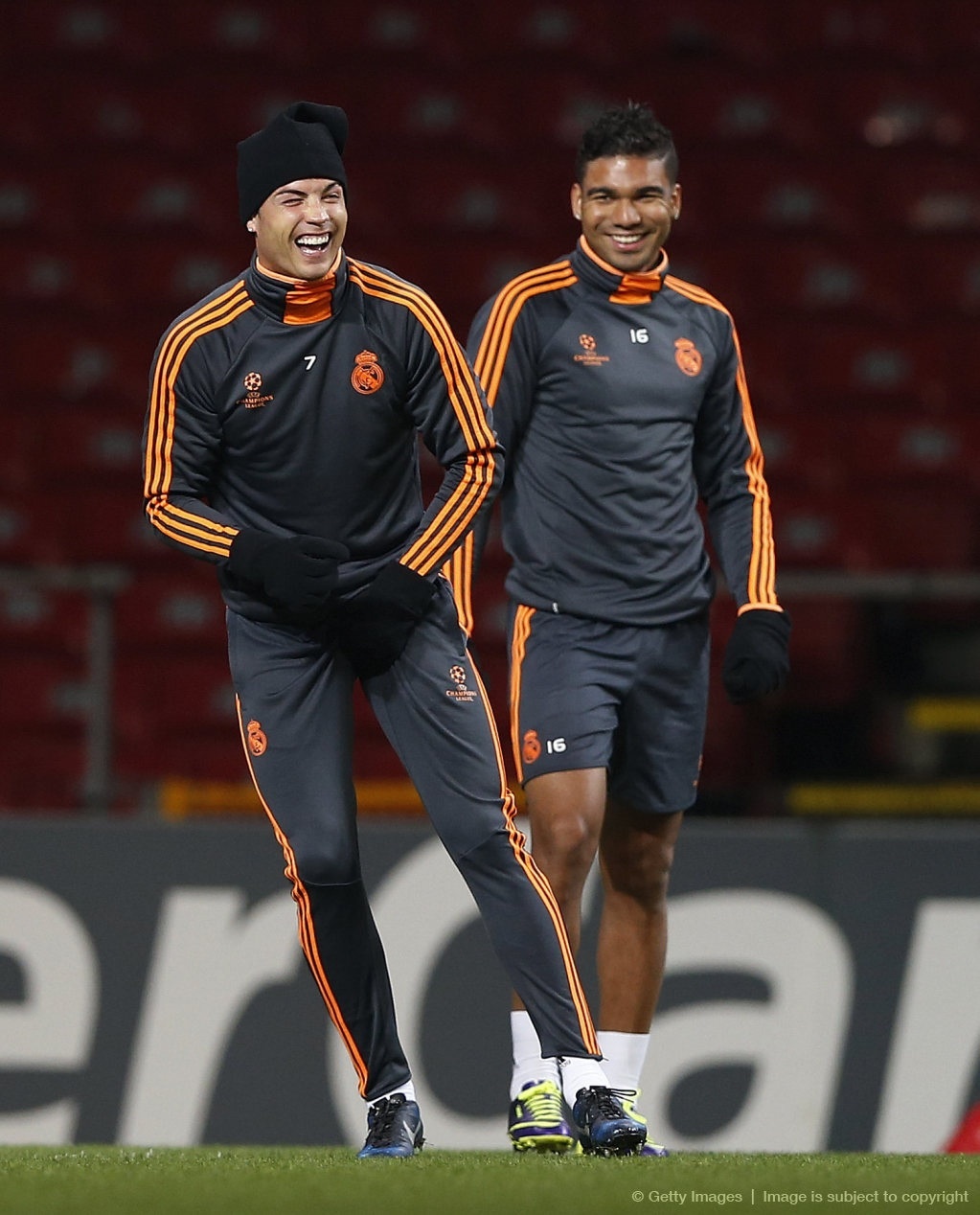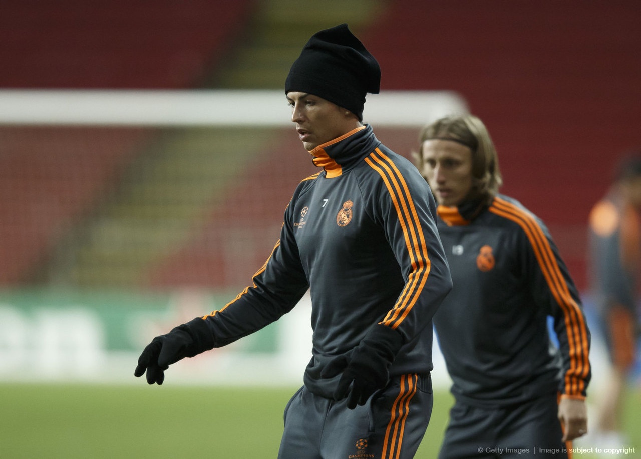 | Hình ảnh đáng yêu của Ronaldo trên sân cỏ. Chiếc mũ len trên đầu càng khiến ngôi sao Real Madrid thêm phần ngộ nghĩnh. |