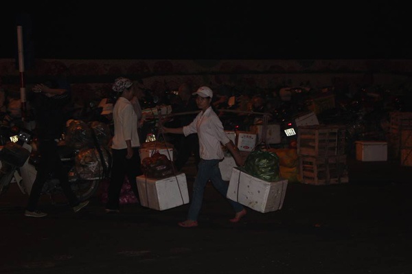Những người phụ nữ làm cửu vạn đêm thường bắt đầu công việc từ 2 - 3 giờ đêm đến tận sáng ngày hôm sau. |