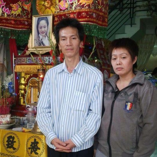 | Bố mẹ Huỳnh Hương trước di ảnh của con gái. Ảnh: Hoàng Yến. |