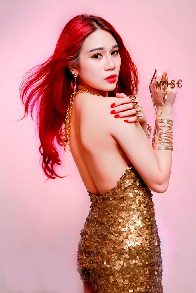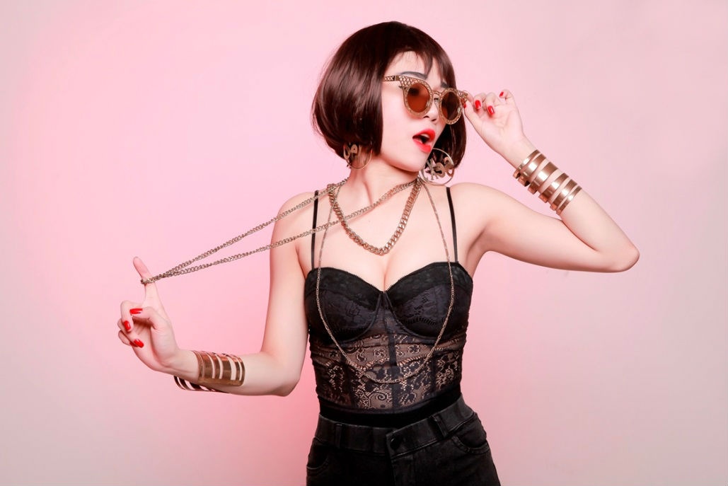 Nữ ca sĩ theo đuổi hình ảnh sexy với phong cách vừa hát vừa biểu diễn DJ trên các sân khấu.