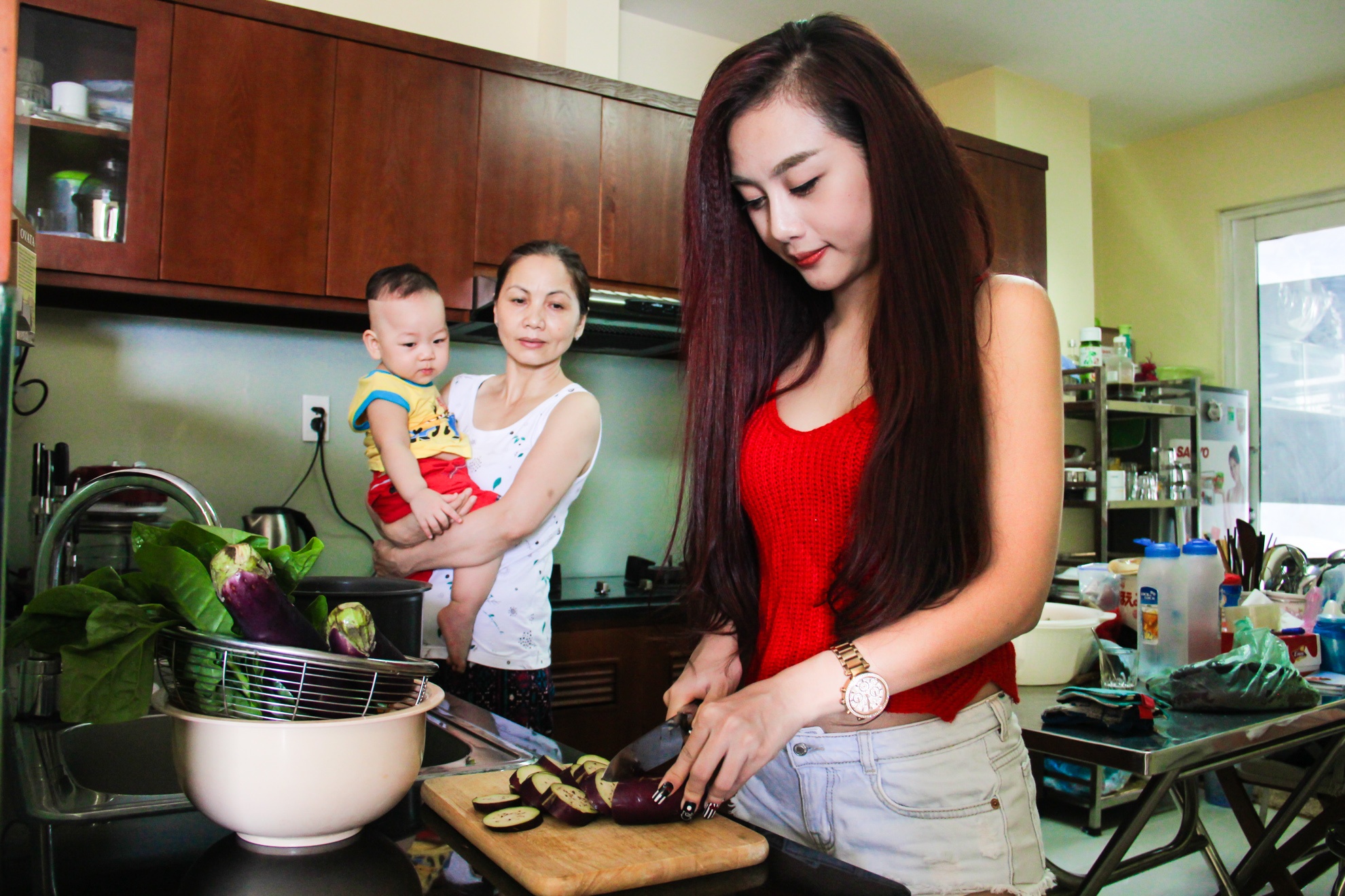 | Mẹ DJ Quỳnh Nhi đã về hưu và chuyển vào sinh sống tại một chung cư ở quận 3, TP HCM cùng con cháu. Nhi tâm sự, mẹ là người tâm lý, biết tôn trọng sự lựa chọn của con cái. Bà đã truyền bí quyết thực hiện nhiều món ăn ngon cho con gái 25 tuổi. |