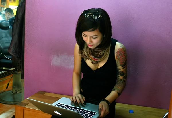 Cô gái có tên Nguyễn Thúy Vi, là một bà chủ kinh doanh dịch vụ xăm thẩm mỹ, chăm sóc sắc đẹp tại Đức. Thúy Vi mới trở về Việt Nam đầu tư thêm và mở một tiệm xăm nghệ thuật tại TP HCM. |