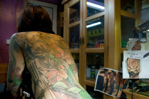 Bà chủ tiệm xăm kể, trong thời gian sống bên Đức, cô đã gặp một biến cố trong cuộc sống. Sau đó được một người bạn tặng 1 quyển sách. Thúy Vi nghiên cứu và nảy ra ý tưởng thể hiện các hình xăm trên cơ thể thành một bức tranh về văn hóa. |