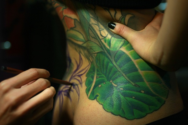 Vi xăm ở Đức vài chỗ, cô về Việt Nam vẽ nốt các chỗ còn lại trên cơ thể. |
