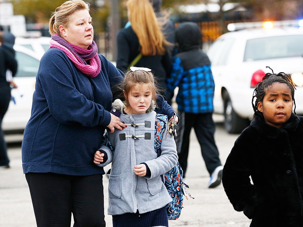| Phụ huynh đến đón con sau khi vụ tai nạn xảy ra. Ảnh: AP. |