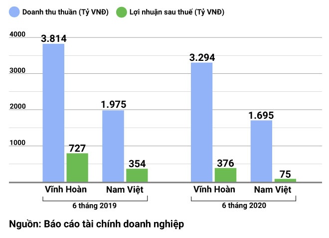 Doanh số 6 tháng đầu năm của Nam Việt đạt 1.695 tỷ đồng. Doanh thu giảm 14% nhưng tỷ suất lợi nhuận gộp của doanh nghiệp giảm tới 50% so với cùng kỳ 2019.