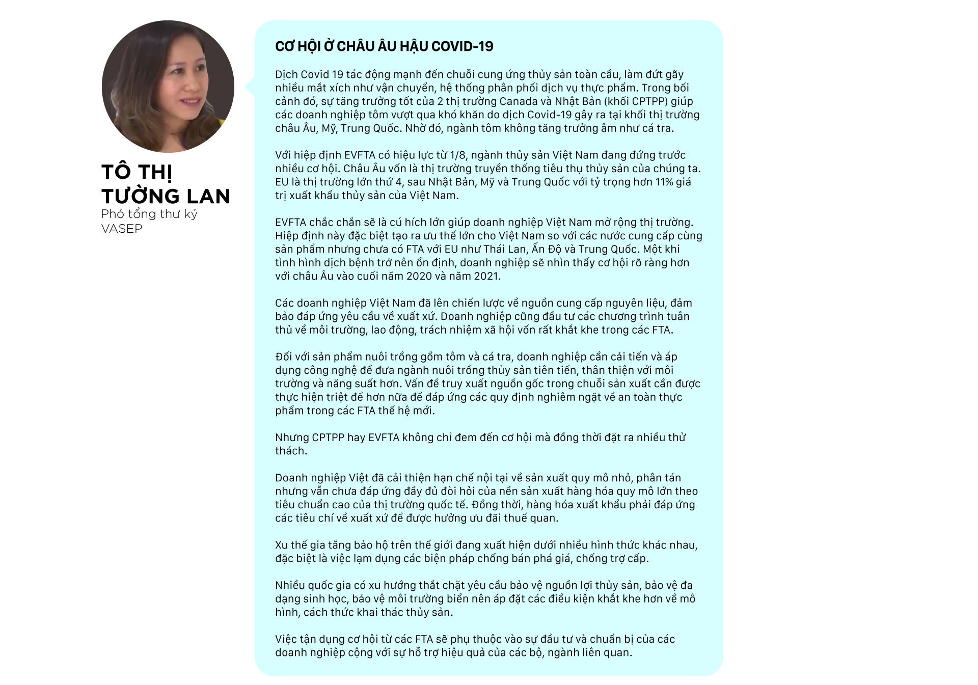 Với thị trường châu Âu, nhóm phân tích nhận định Hiệp định Thương mại Tự do EU-Việt Nam (EVFTA) sẽ đưa tiêu thụ cá tra Việt ở EU thoát khỏi đà suy giảm. Thuế nhập khẩu năm 2020 giảm từ 5,5% xuống 4,1% và về 0 vào năm 2023. EVFTA đồng thời khiến doanh nghiệp phải chủ động khắc phục các vấn đề về quy tắc xuất xứ, an toàn thực phẩm và bền vững môi trường.