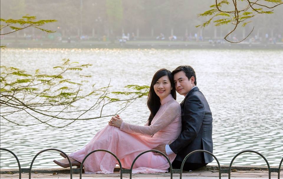 | Thanh Trang và ông xã từng là hàng xóm từ hơn 20 năm trước ở Hà Nội. Hai người mất liên lạc suốt 2 thập kỷ và tìm được nhau qua mạng xã hội. Ảnh: FBNV. |