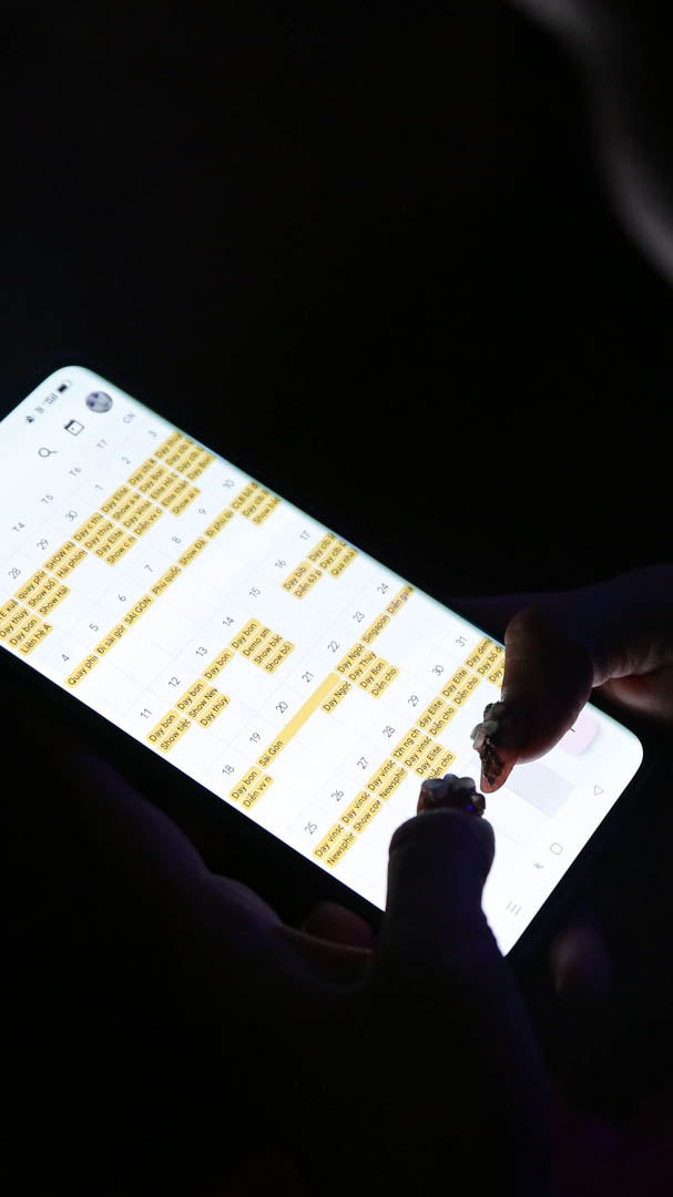| Kết thúc công việc và trở về nhà quá nửa đêm, tôi tranh thủ tẩy trang và kiểm tra lại lịch làm việc của ngày mai. Dù toàn thân đau nhức, nghĩ đến ngày mai lại được làm công việc yêu thích, được mọi người đón nhận, tôi lại có thêm động lực để tiếp tục với nghề. |