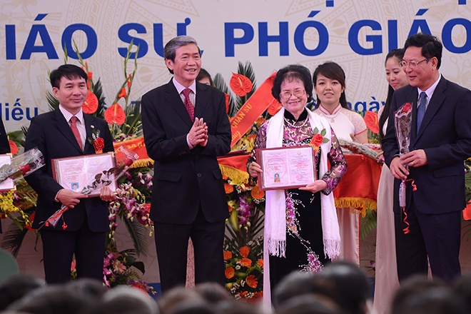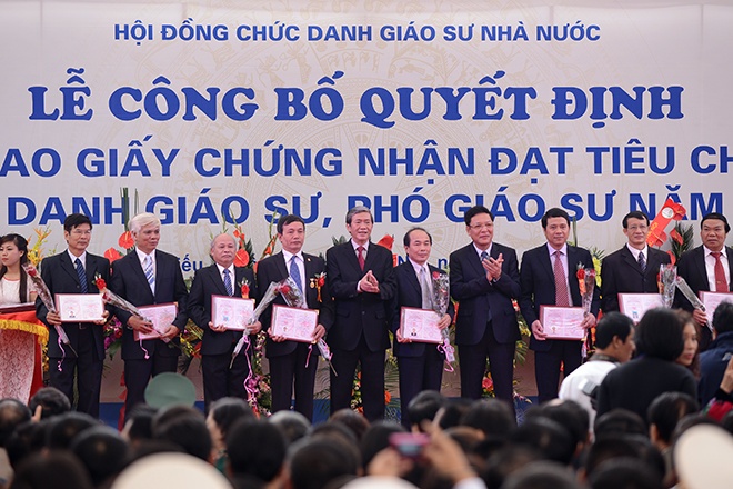 | Sáng 18/11, tại Văn Miếu - Quốc Tử Giám (Hà Nội), Lễ công bố quyết định và trao giấy chứng nhận đạt tiêu chuẩn chức danh giáo sư, phó giáo sư năm 2013 đã được tổ chức. Năm 2013, cả nước có 57 tân giáo sư và 514 tân phó giáo sư được công nhận. |