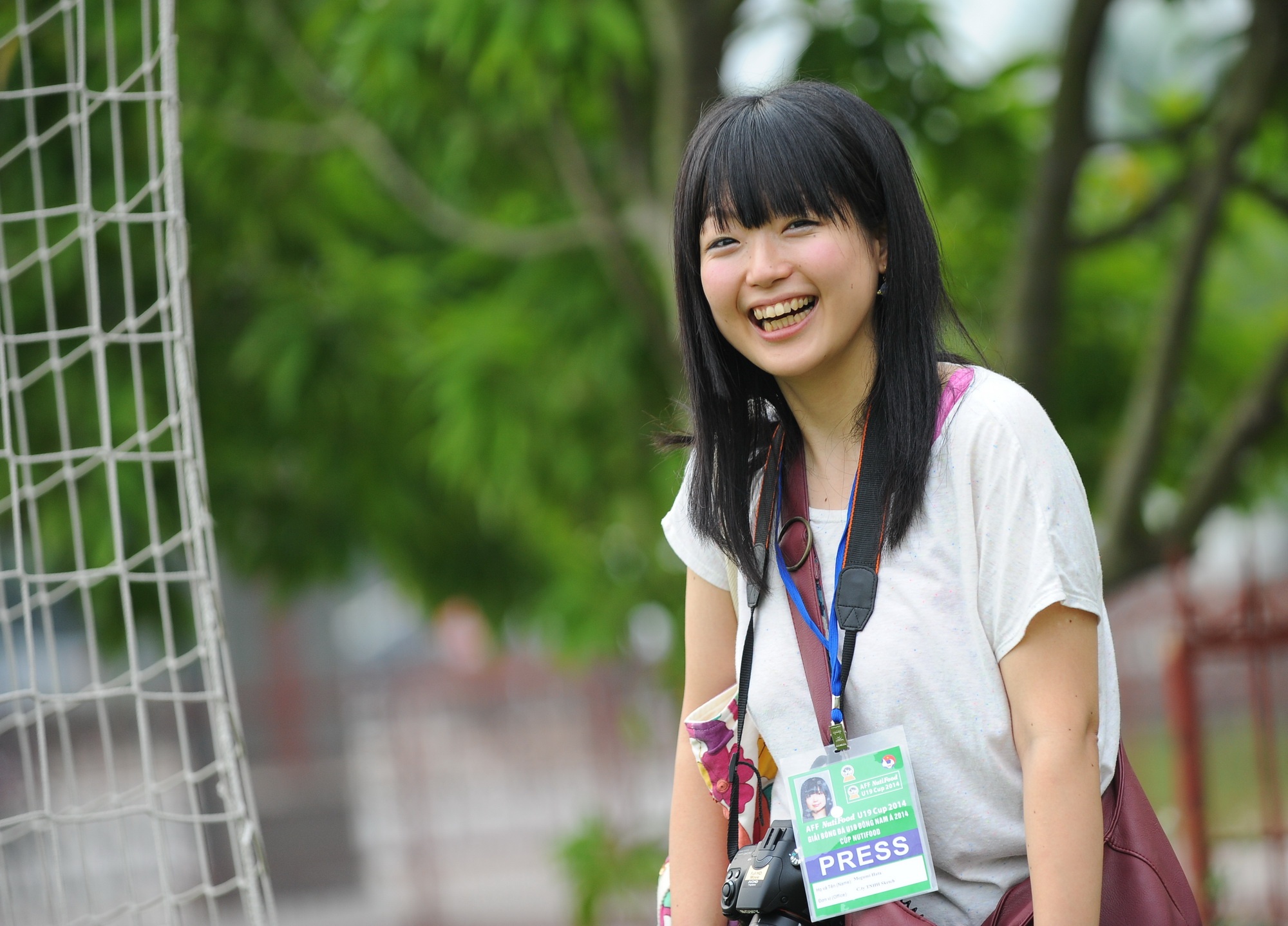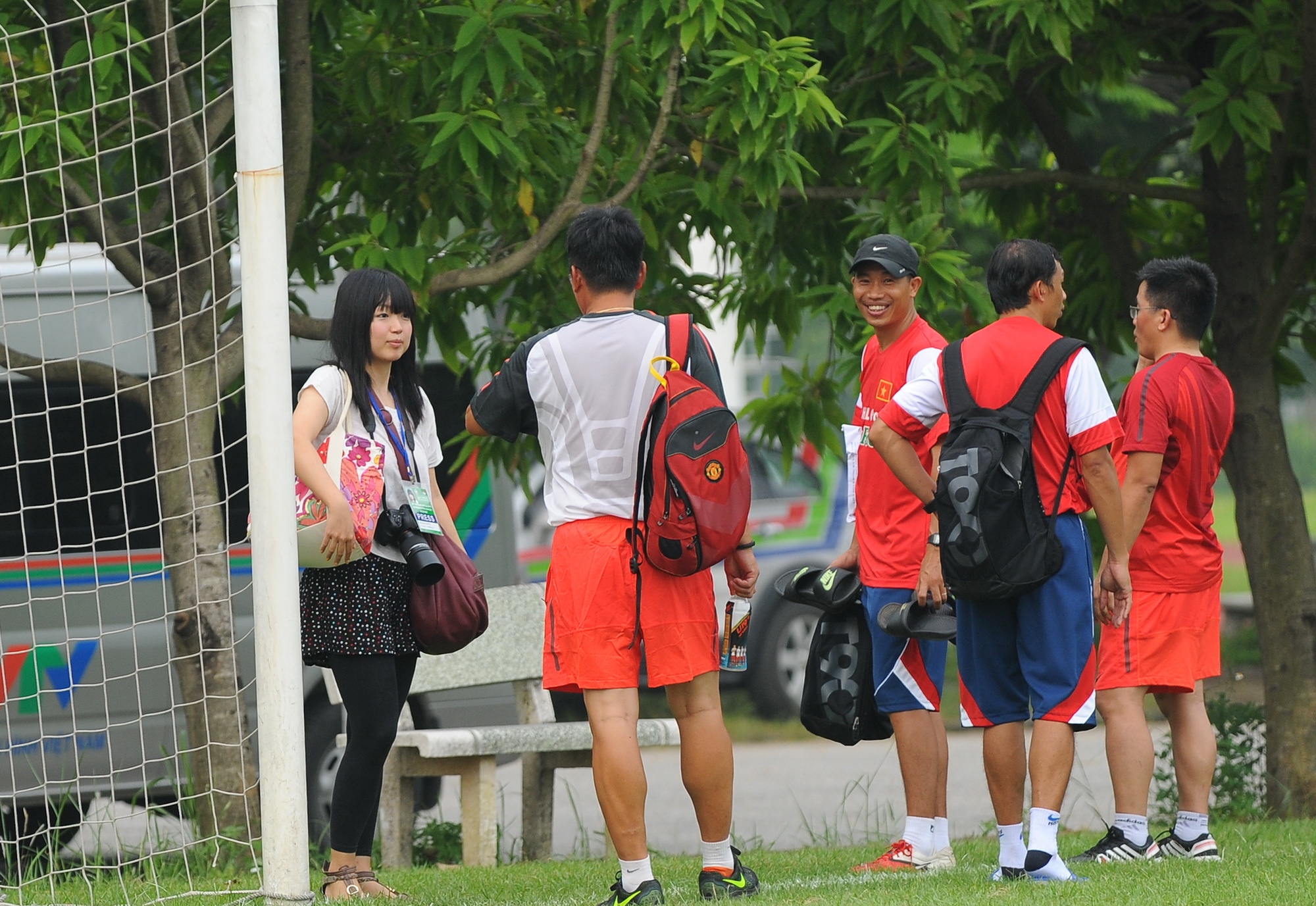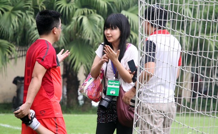 | Nữ phóng viên đến từ xứ sở mặt trời mọc có mặt trong buổi tập của U19 Việt Nam chuẩn bị cho trận đối đầu với U19 Nhật Bản trong khuôn khổ vòng bảng giải U19 Đông Nam Á 2014 - Cup NutiFood. Cô cũng chính là phóng viên duy nhất đồng hành cùng với U19 Việt Nam trong suốt quãng thời gian 1 tháng tập huấn tại Nhật Bản. |