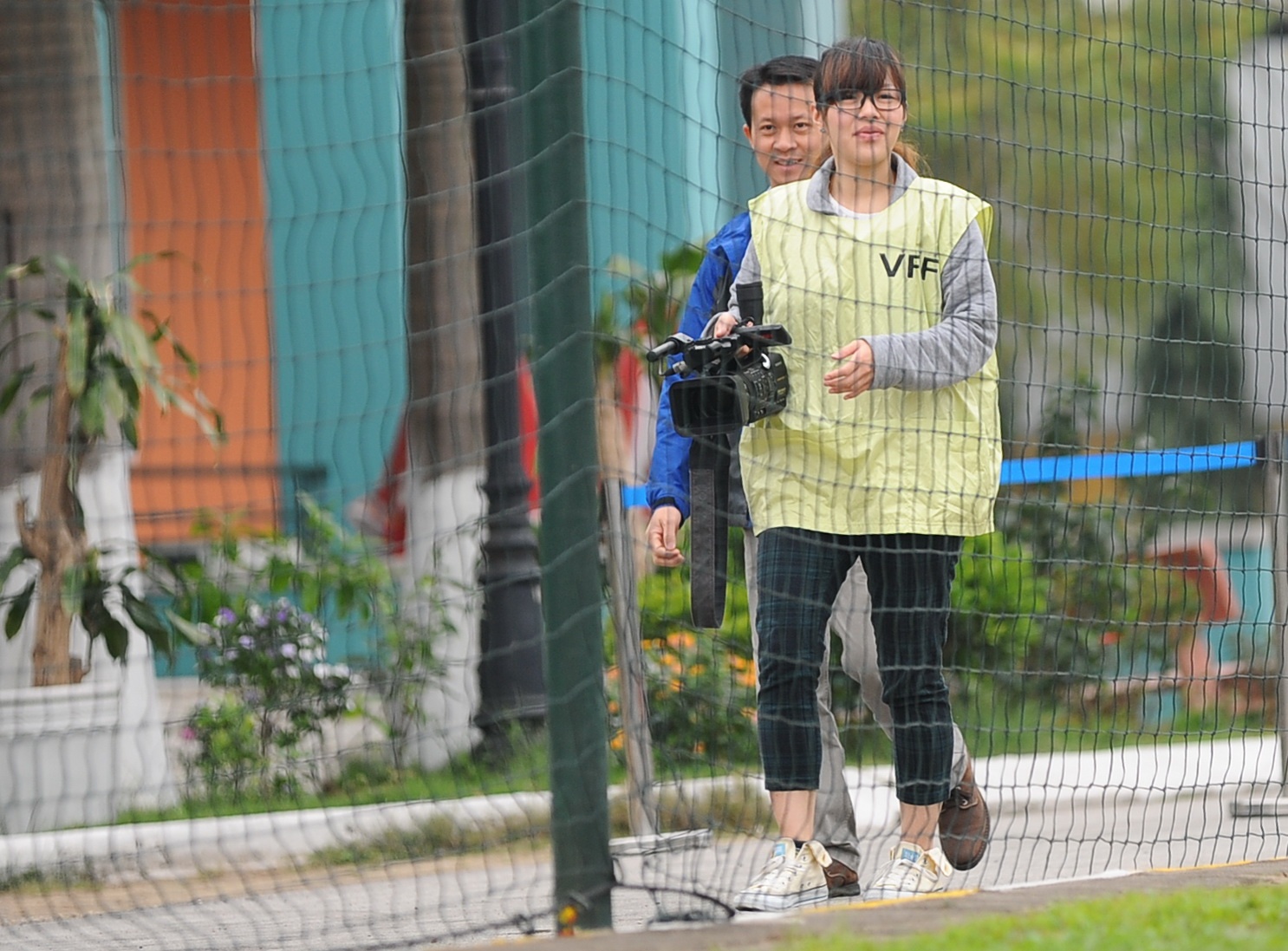 | Yumiko Tsuchiya cùng cộng sự đến sân trung tâm đào tạo trẻ VFF để ghi hình buổi tập của Olympic Việt Nam. Do chưa biết quy định khắt khe của HLV Miura đối với truyền thông nên phóng viên người Nhật Bản đã di chuyển và tác nghiệp sai vị trí quy định. |