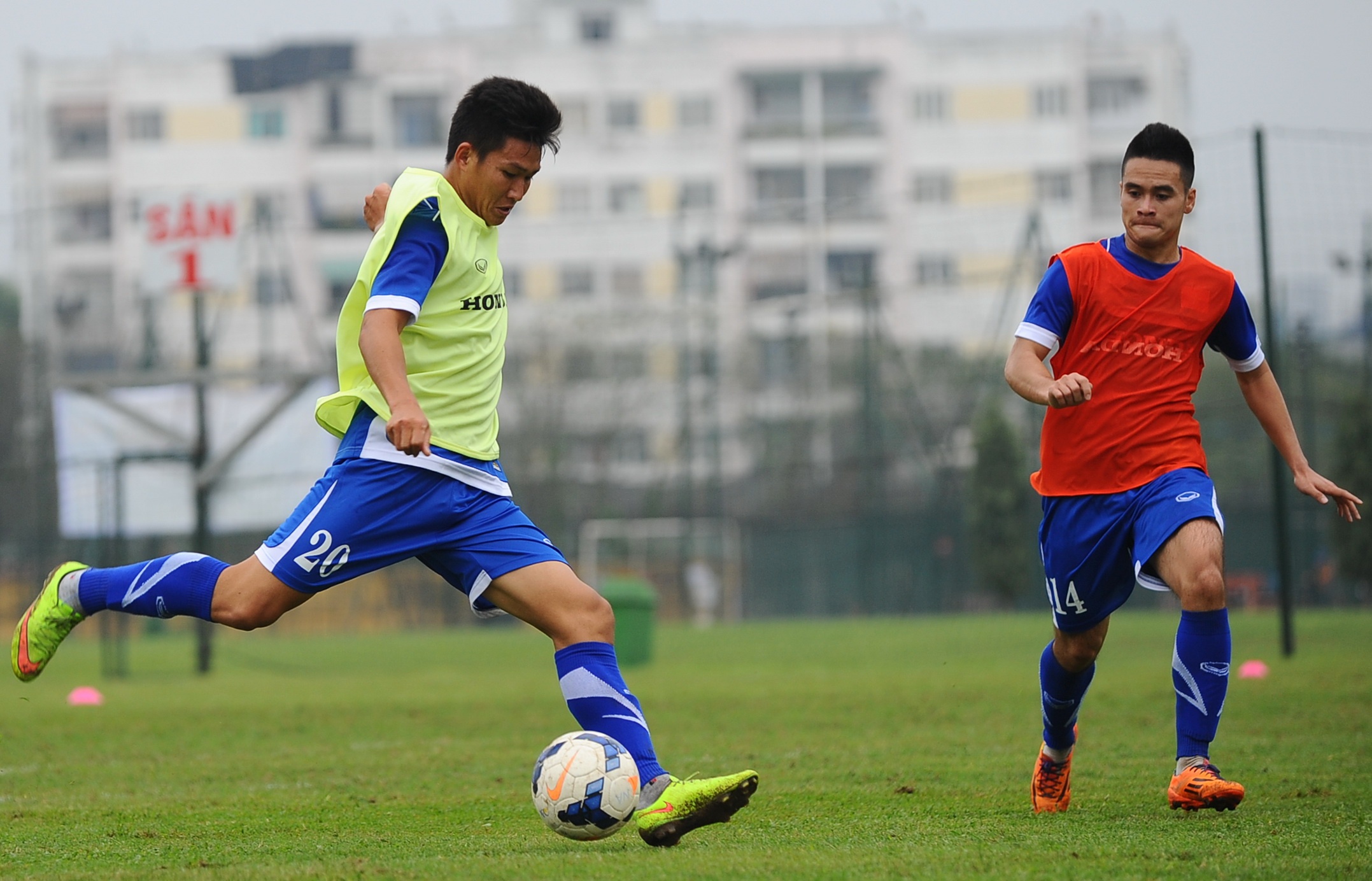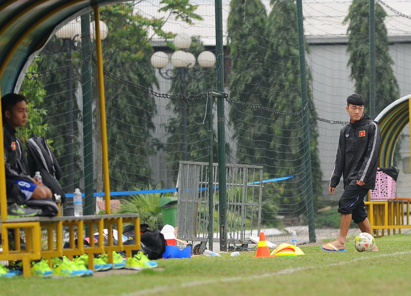 | Xuân Trường, Tuấn Tài vẫn phải làm "khán giả" trong buổi tập của Olympic Việt Nam. |