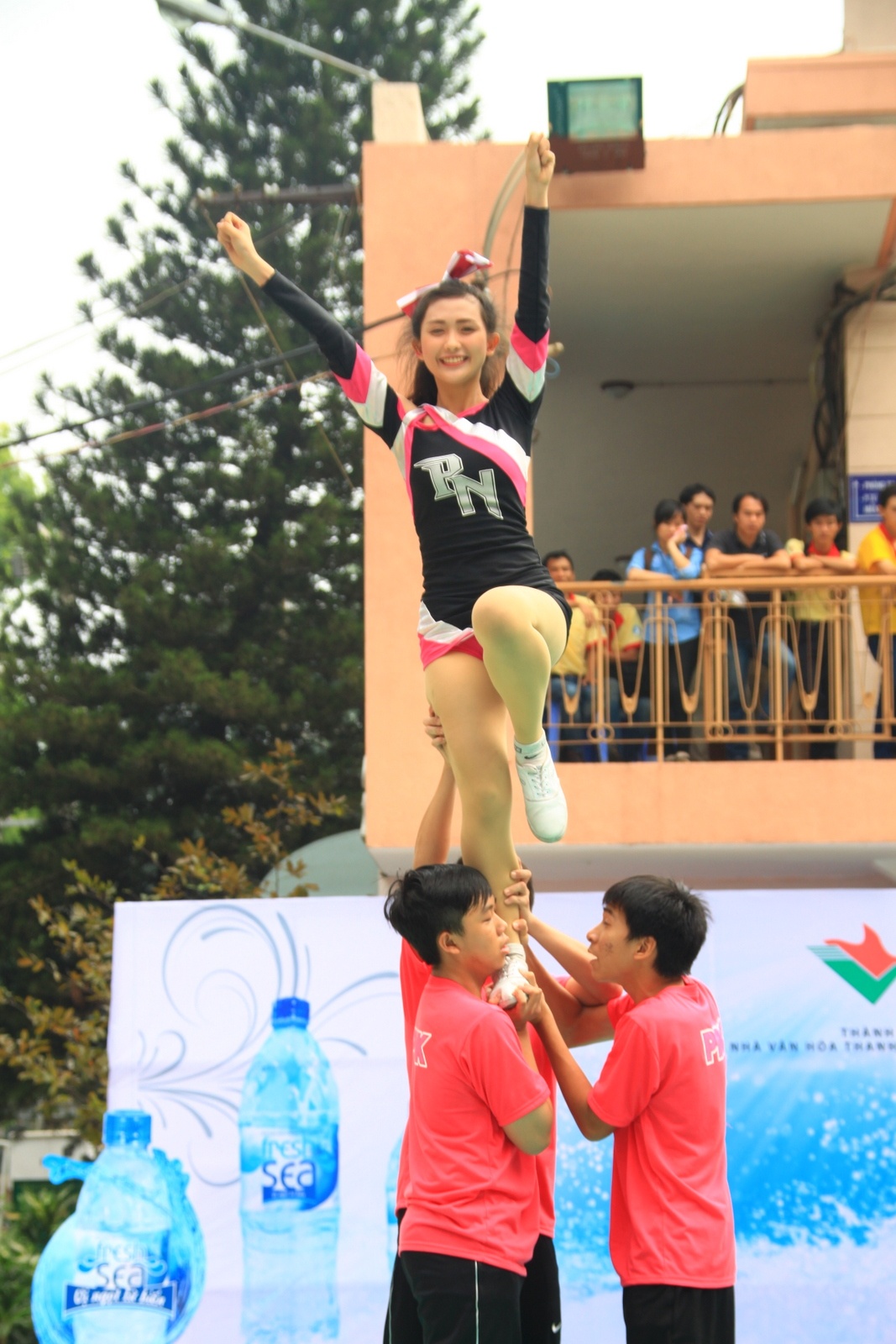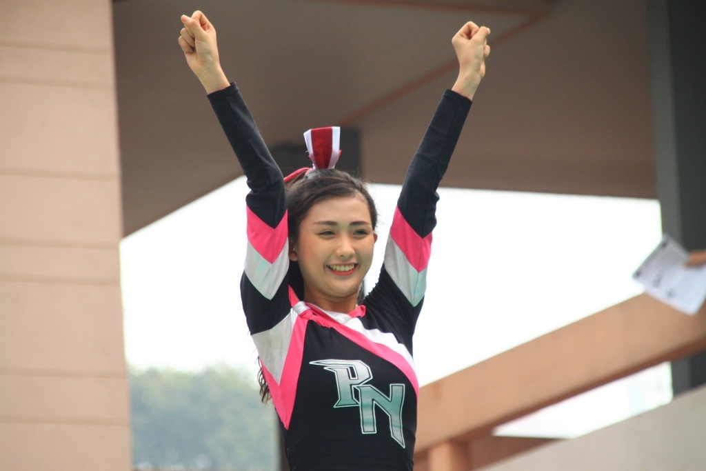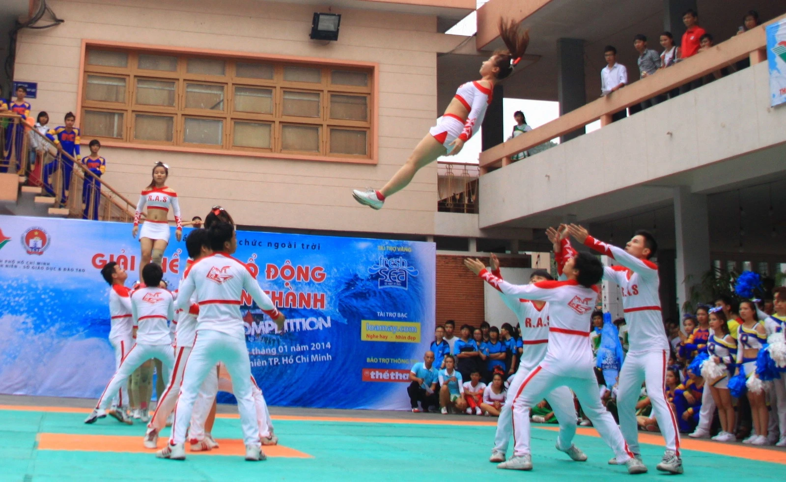Nữ sinh trường ĐH KHXH & NV Hà Nội đã trình diễn những màn nhào lộn ấn tượng trong cuộc thi thể dụng cổ động TP.HCM.