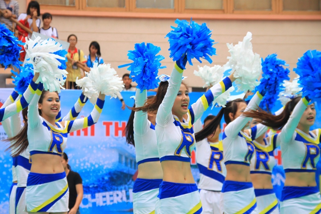 | Phần nhảy cổ động của đội trường D9H KHXH & NV Hà Nội diễn ra sôi nổi, đẹp mắt. |