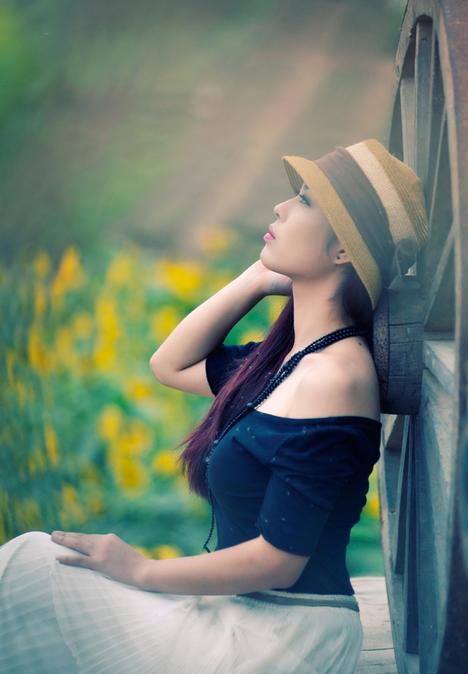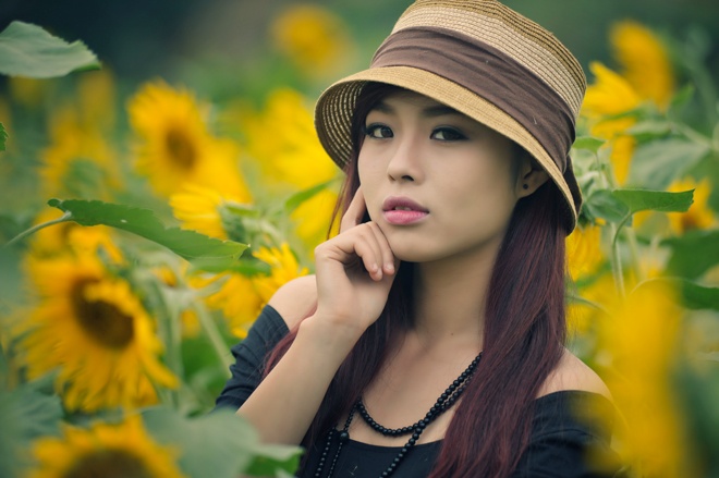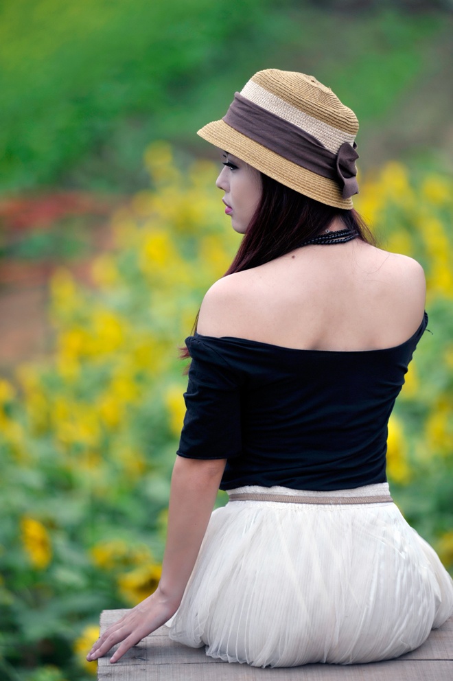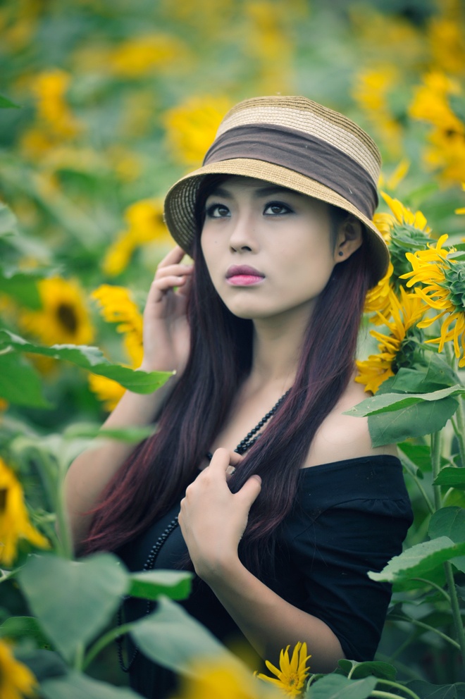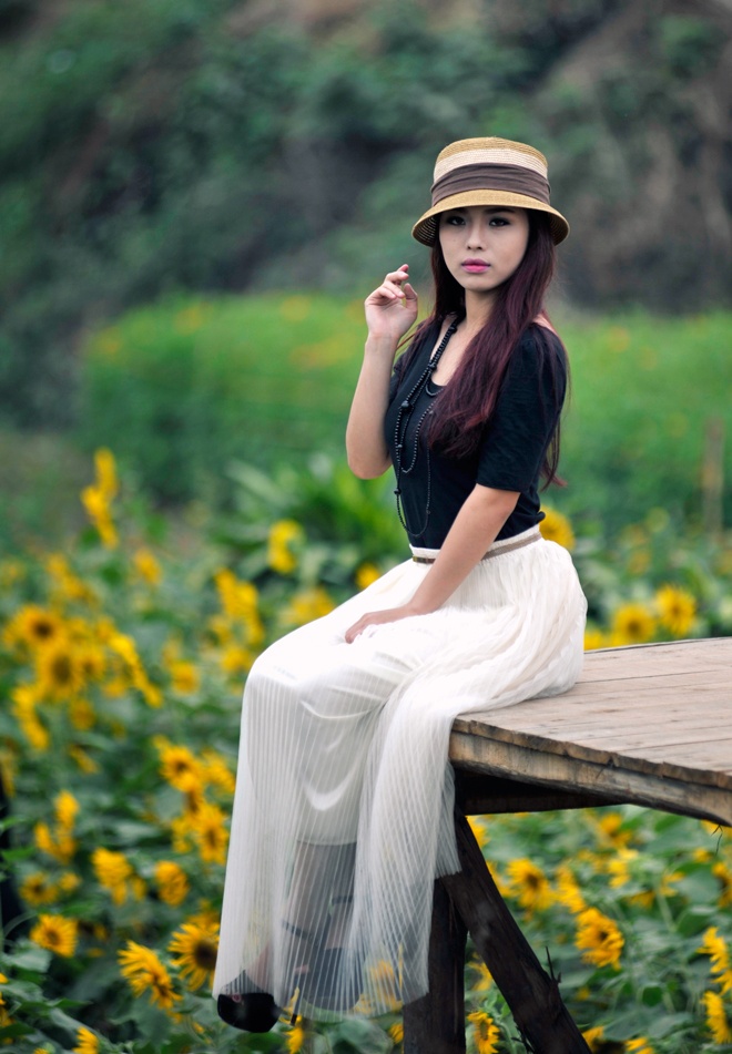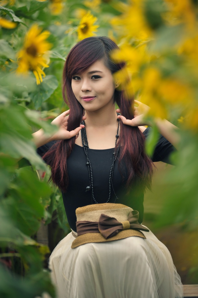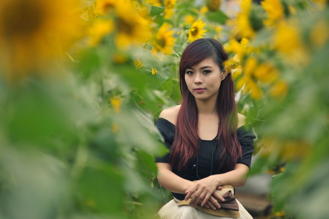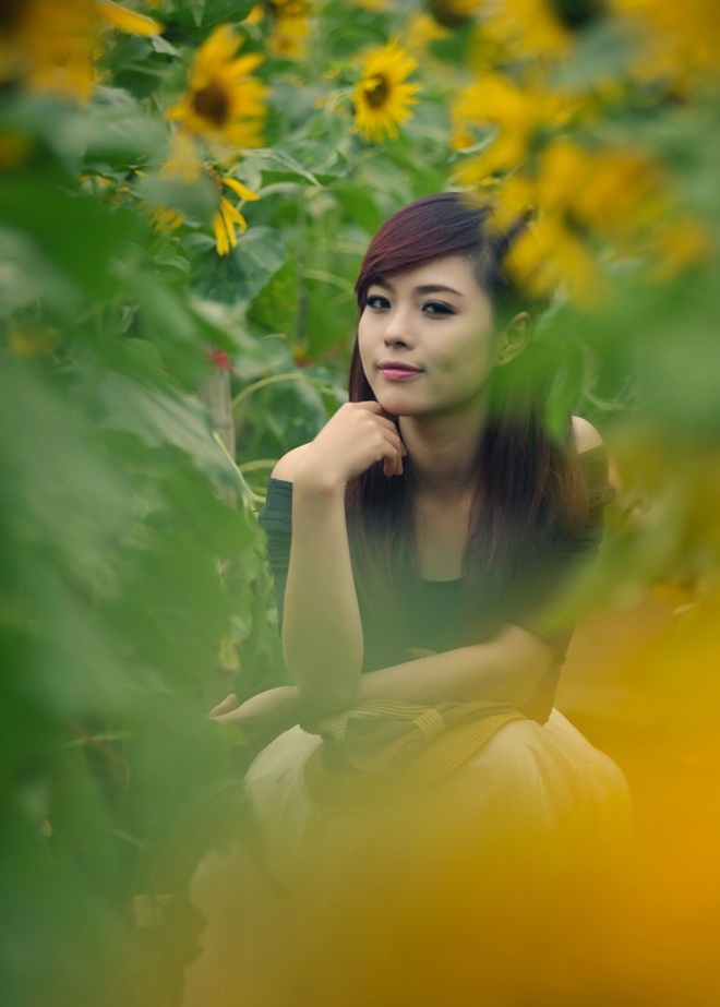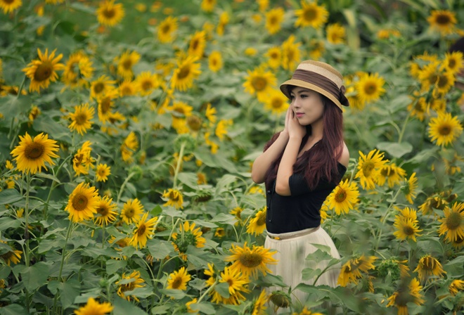 Chu Diệu Huyền - cô gái sinh năm 1992, hiện đang học khoa Kế toán trường ĐH Công nghiệp Hà Nội xinh xắn bên cánh đồng hoa hướng dương rực vàng.