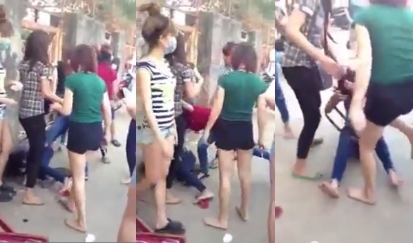 | Hình ảnh nhóm thiếu nữ đánh hội đồng cô gái giữa ban ngày. |
