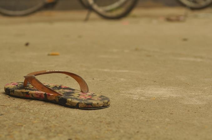 | Chiếc dép tông màu xám của nạn nhân tại hiện trường. |