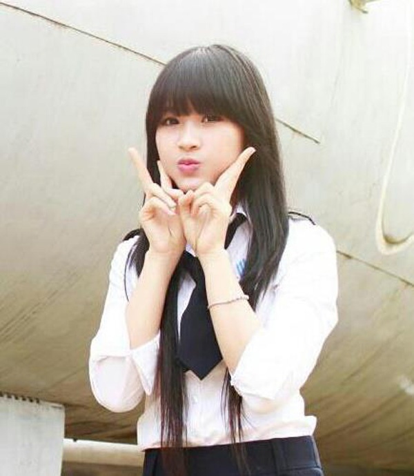 | Cô bạn cũng thường xuyên tạo dáng với bộ đồng phục trường. |