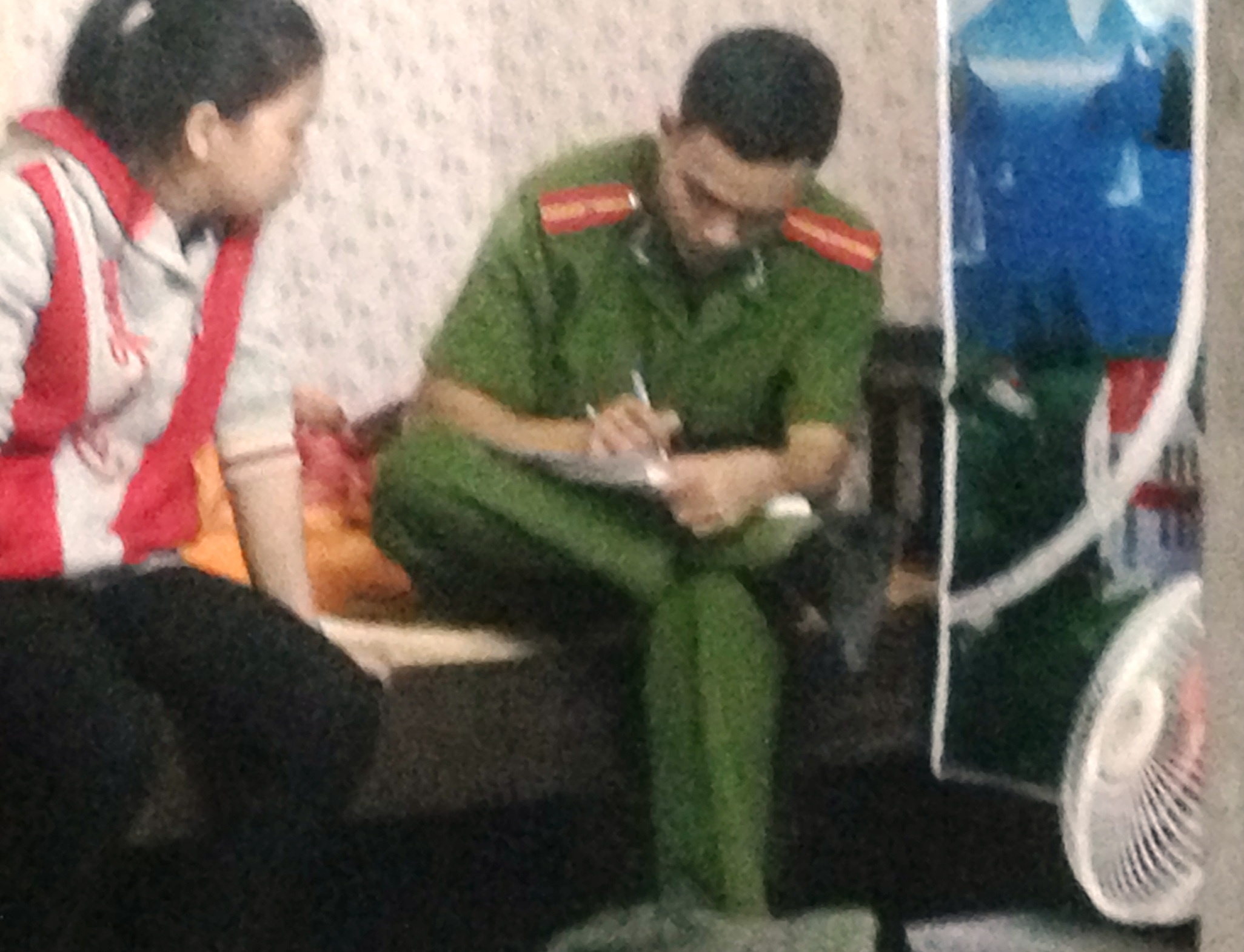 | Thanh Hương đang kể lại vụ việc với công an. |