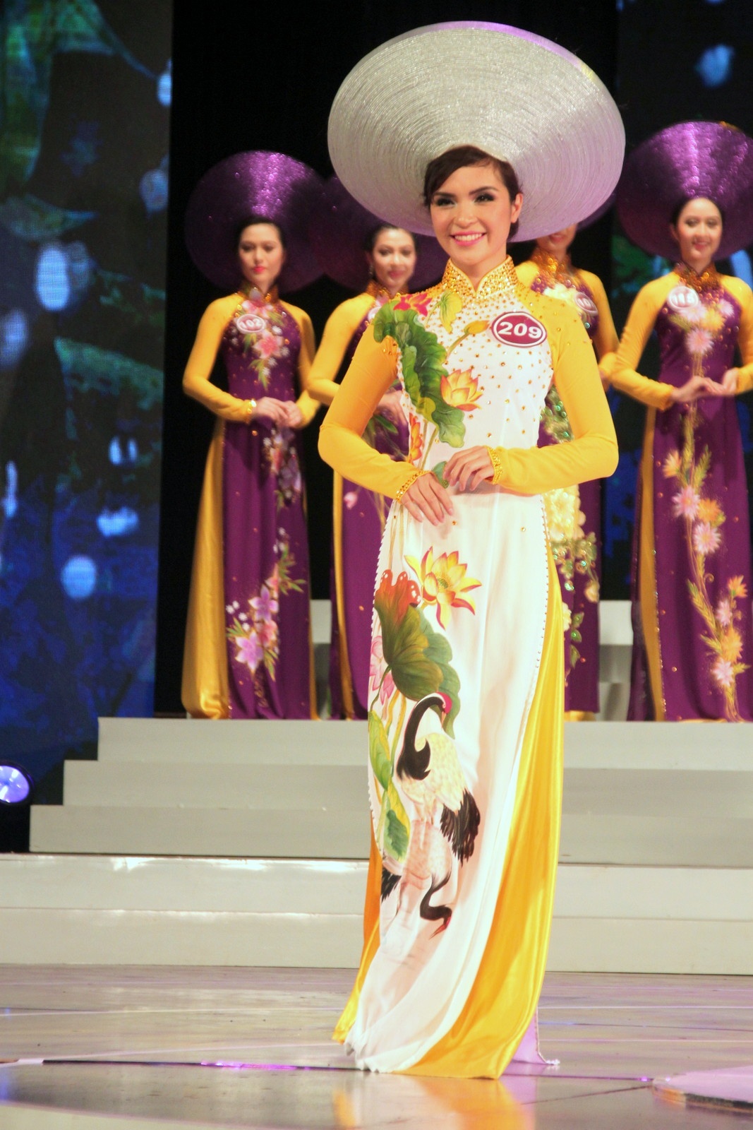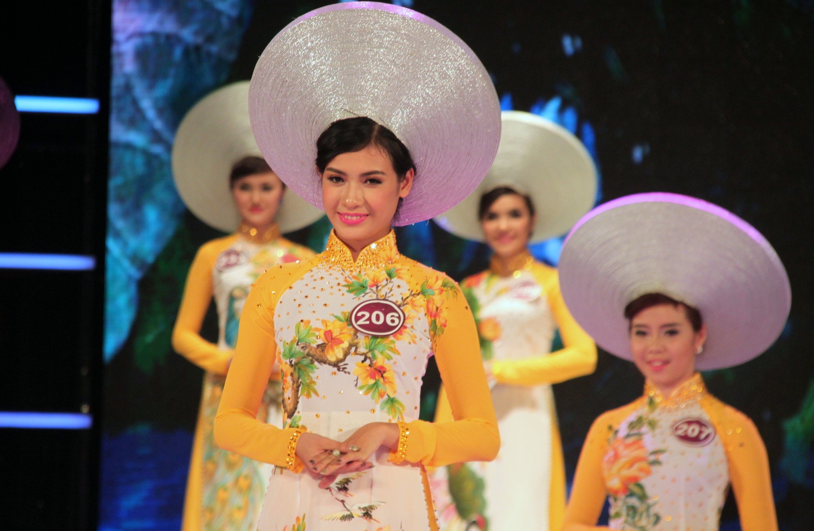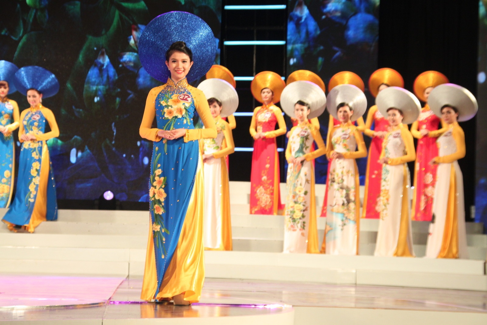 | Phần thi đầu tiên, 47 thí sinh trình diễn trang phục áo dài truyền thống. |