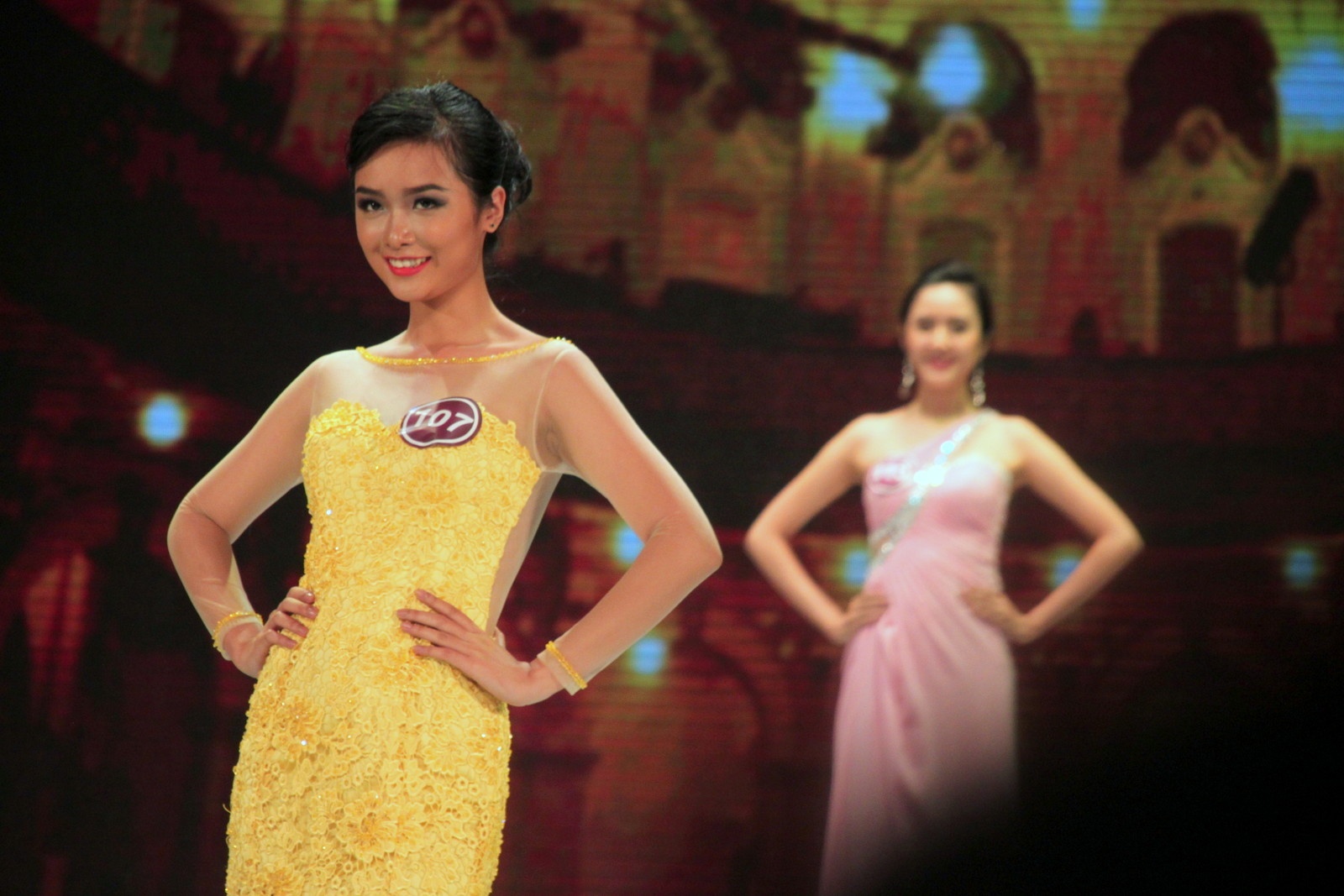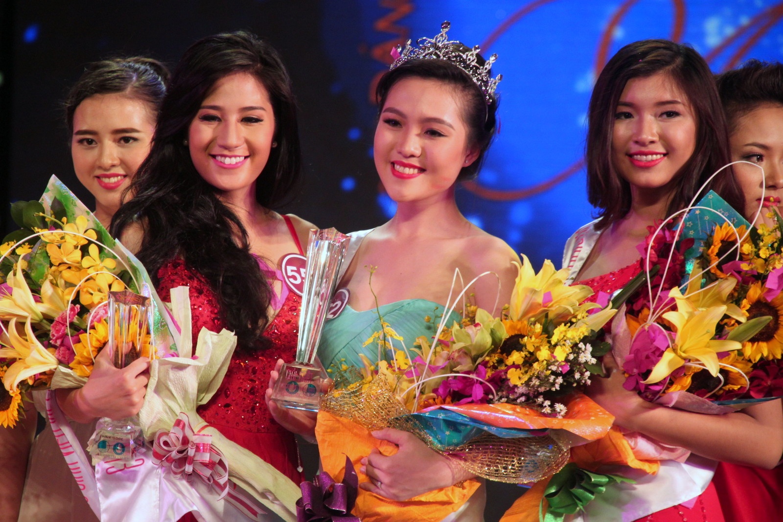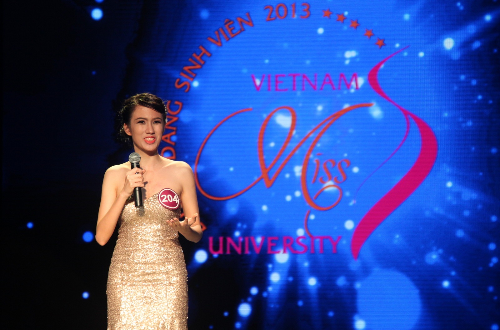 Cô gái trường ĐH Kinh tế - Luật, Trần Diễm Ái Vi đã vượt qua 46 thí sinh khác để đoạt vương miện cuộc thi Nữ sinh viên Việt Nam duyên dáng 2013.